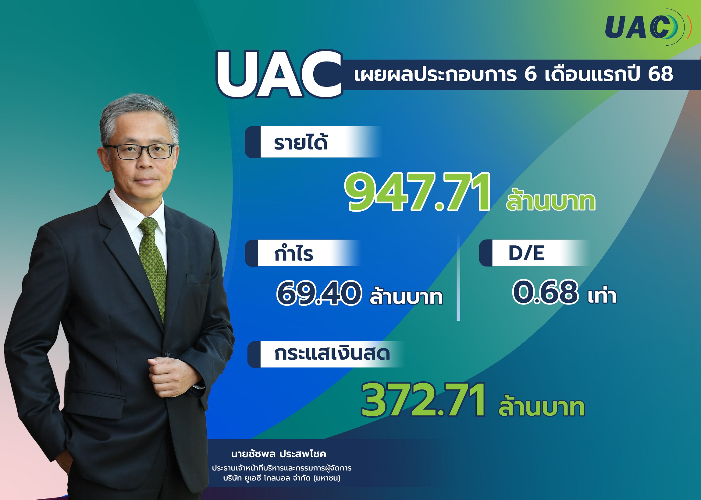 UAC ครึ่งปีแรกกวาดรายได้ 947.71 ล้านบาท เสถียรภาพทางการเงินแข็งแกร่ง ลุยขยายธุรกิจพลังงานสะอาด