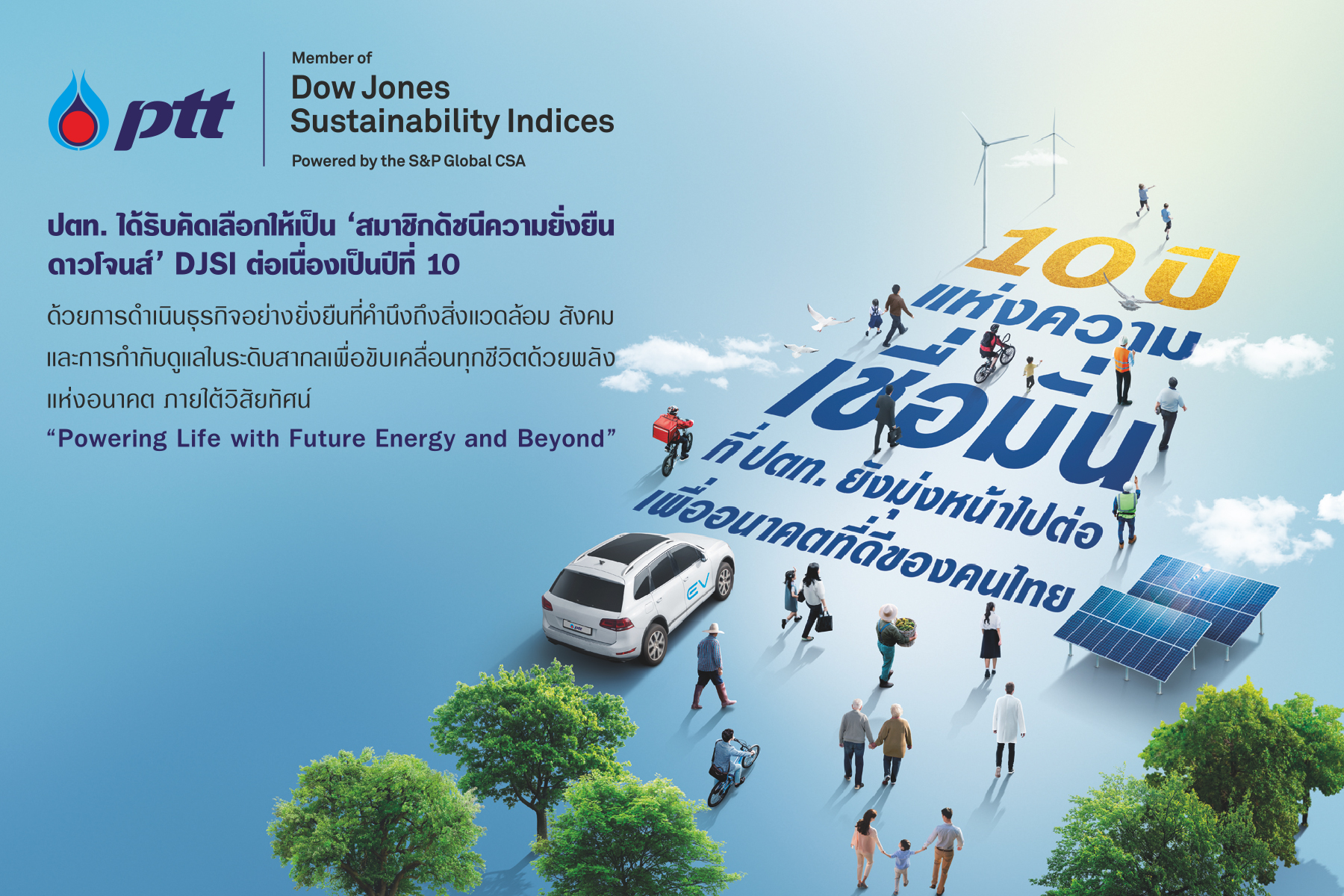 ปตท. ติดอันดับดัชนีความยั่งยืนดาวโจนส์ “DJSI” ต่อเนื่องเป็นปีที่ 10 พร้อมเดินหน้าธุรกิจสู่ความยั่งยืน มุ่งพัฒนาสู่สังคมคาร์บอนต่ำ