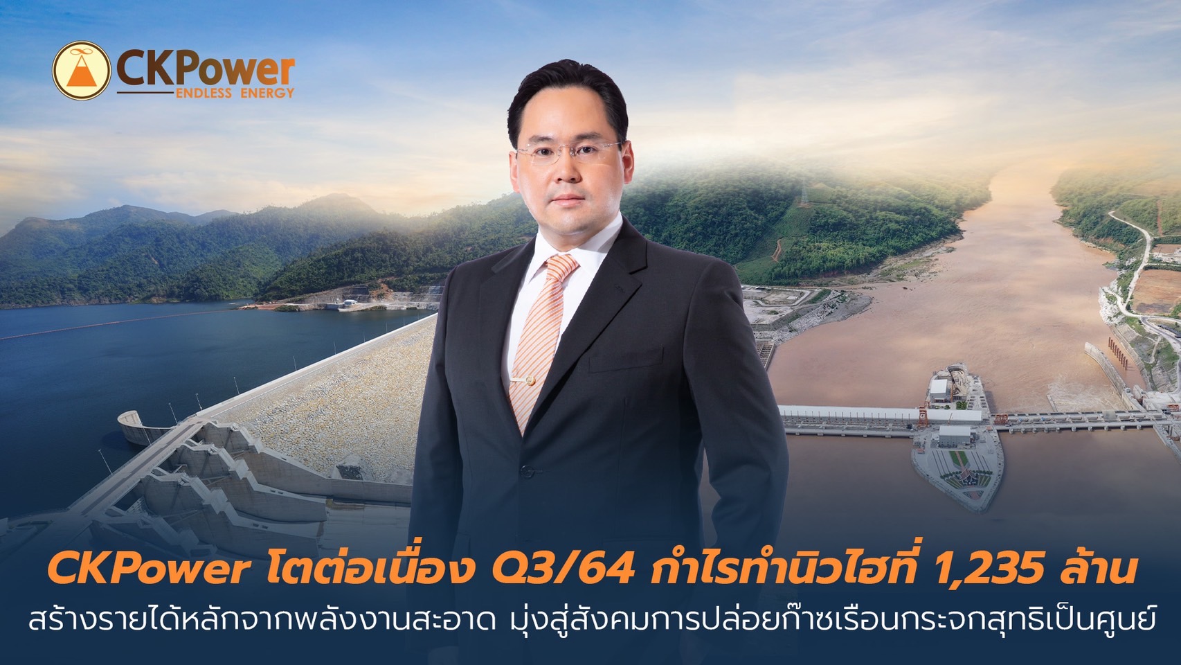 CKPower โตต่อเนื่อง Q3/64 กำไรทำนิวไฮที่ 1,235 ล้านบาท สร้างรายได้หลักจากพลังงานสะอาด