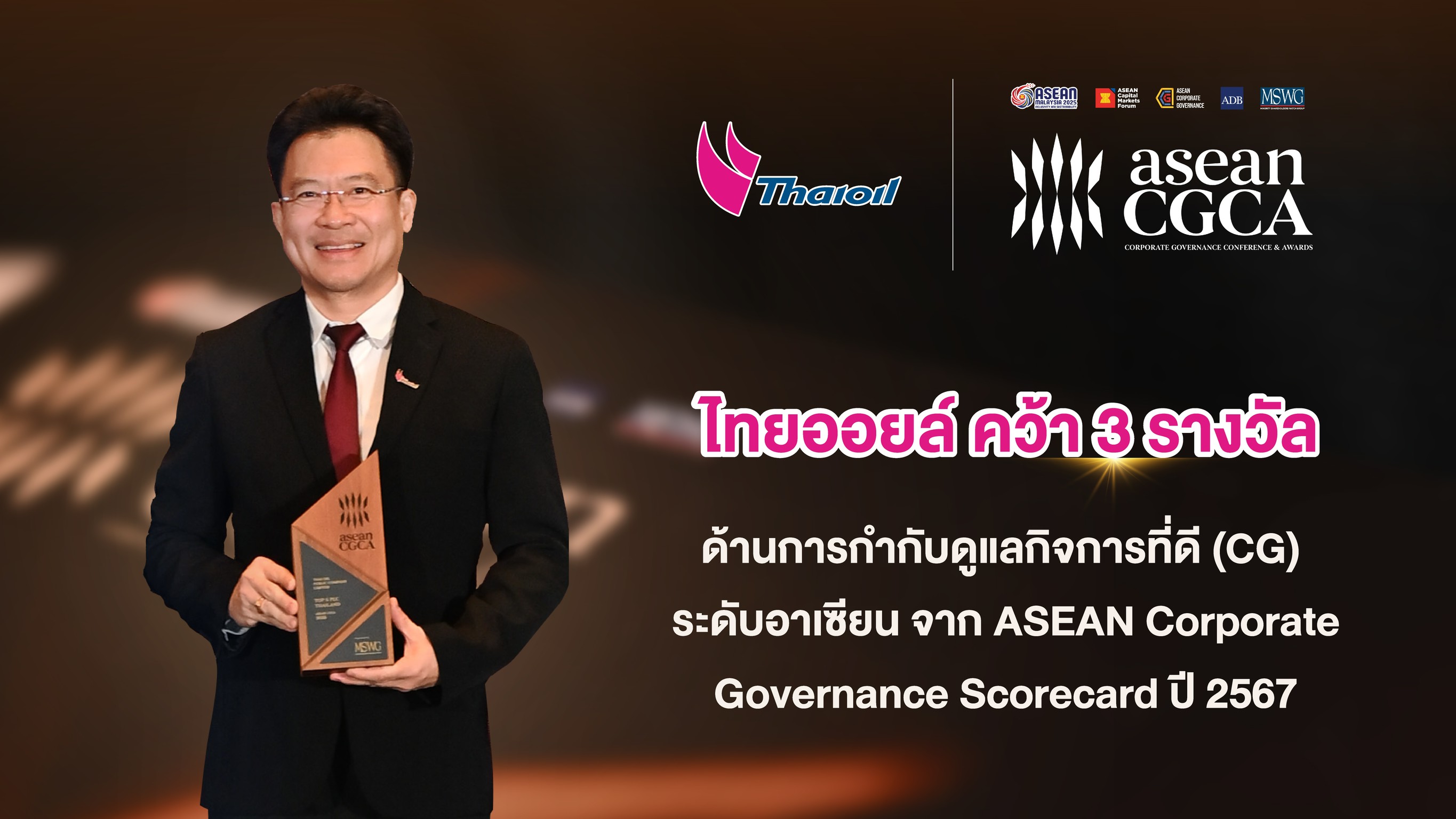 ไทยออยล์ คว้า 3 รางวัลด้านการกำกับดูแลกิจการที่ดี (CG) ระดับอาเซียน จาก ASEAN Corporate Governance Scorecard ปี 2567