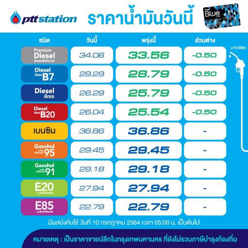 อั้นไว้ ! พรุ่งนี้ ปตท.-บางจาก ปรับลดราคาน้ำมันดีเซลทุกชนิดลง 0.50 บาท/ลิตร