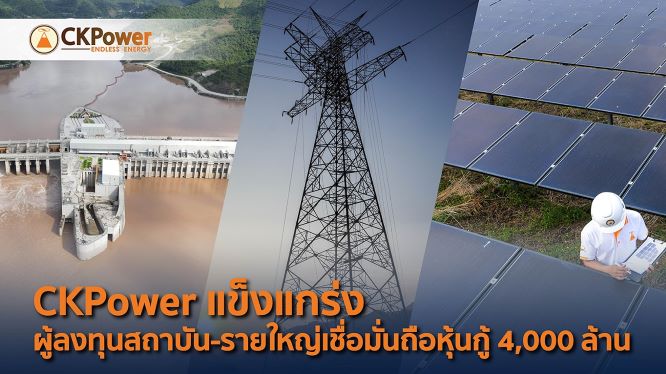 CKPower ปลื้ม ออกหุ้นกู้ 4,000 ล้าน ยอดจองทะลุ 3.9 เท่า เตรียมลงทุนโรงไฟฟ้าพลังน้ำในสปป. ลาว เพิ่ม