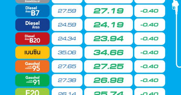อีก 2 วัน ลดราคาน้ำมันทุกชนิด 0.30 บาทต่อลิตร เว้น E85 ลดลง 0.15 บาทต่อลิตร