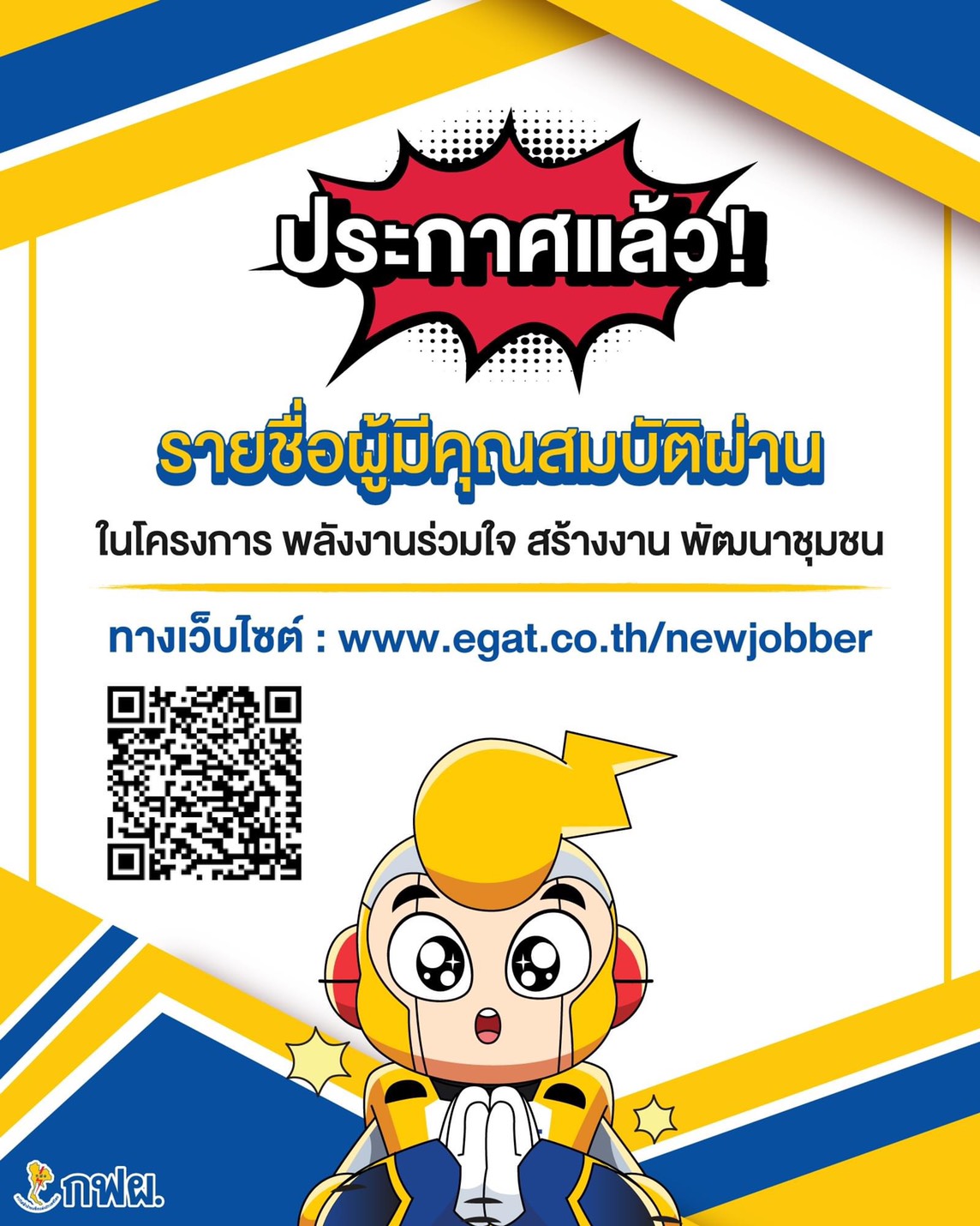 กฟผ. ประกาศรายชื่อผู้ผ่านคุณสมบัติ “โครงการพลังงานร่วมใจ สร้างงาน พัฒนาชุมชน” ครั้งที่ 2