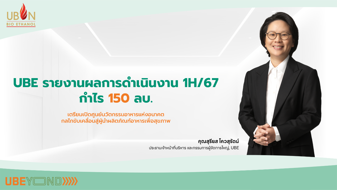 UBE โชว์ 1H/67 กำไร 150 ลบ.เตรียมเปิดศูนย์นวัตกรรมอาหารแห่งอนาคต สู่ผู้นำผลิตภัณฑ์อาหารเพื่อสุขภาพ