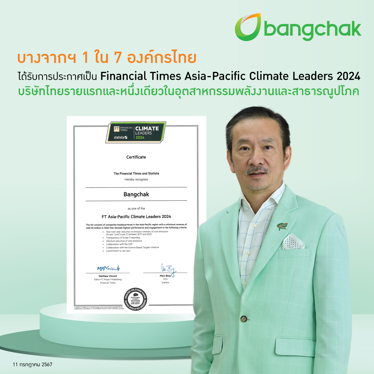 Financial Times ประกาศให้บางจากฯ เป็นองค์กรชั้นนำด้านสภาพภูมิอากาศ ในภูมิภาคเอเชียแปซิฟิก