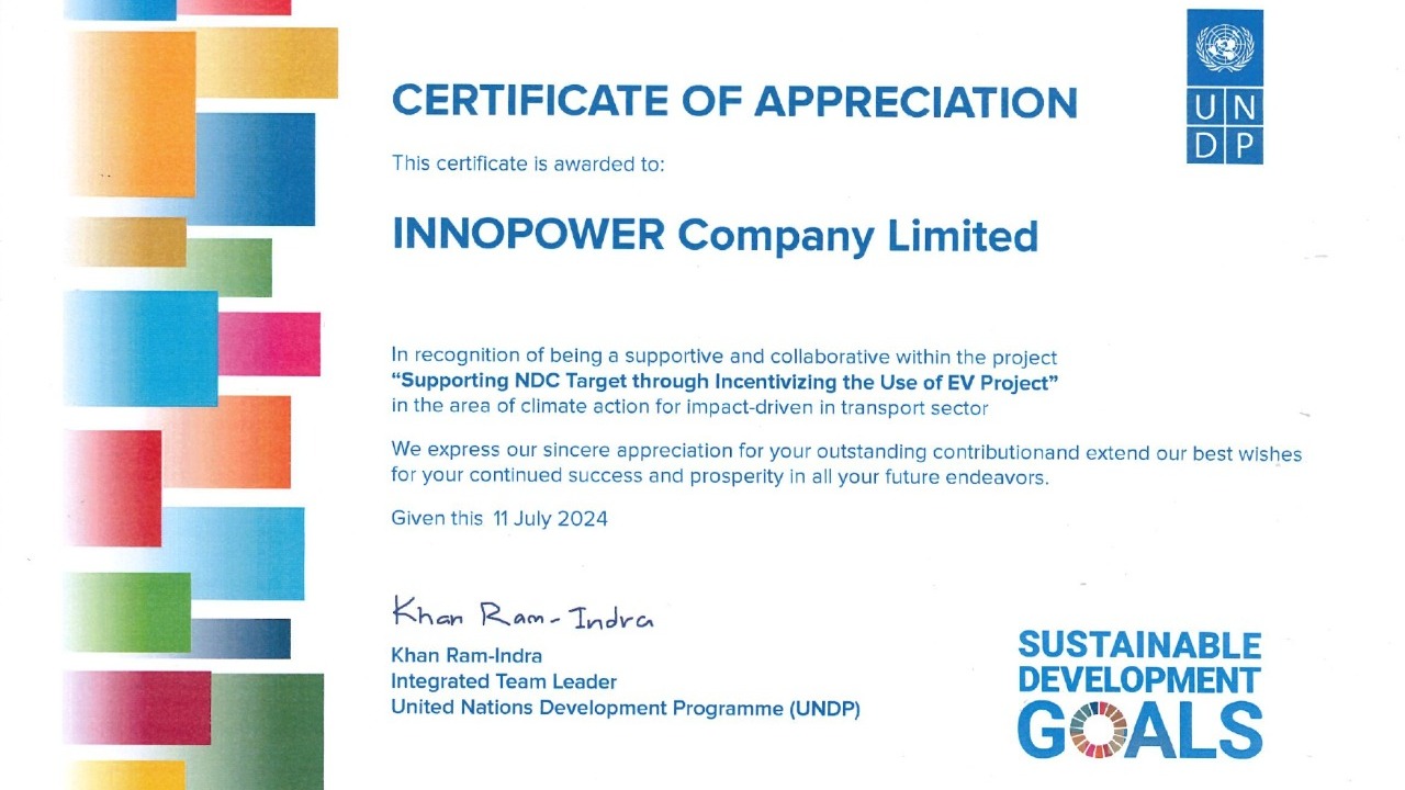 อินโนพาวเวอร์” ได้ใบรับรอง UNDP ในการหนุนโครงการ EV ที่รฟ.แม่เมาะ ช่วย กฟผ.รับแต้มลดคาร์บอน-ลดต้นทุนเป็นรูปธรรม