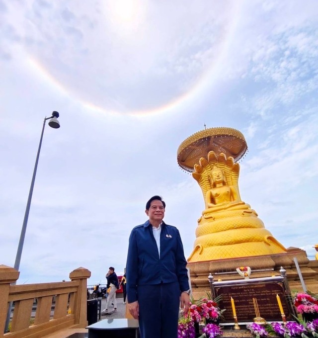 ฮือฮา!! พระอาทิตย์ทรงกลด ขณะ ‘พีระพันธุ์ สาลีรัฐวิภาค’ สักการะหลวงพ่อเจ็ดกษัตริย์
