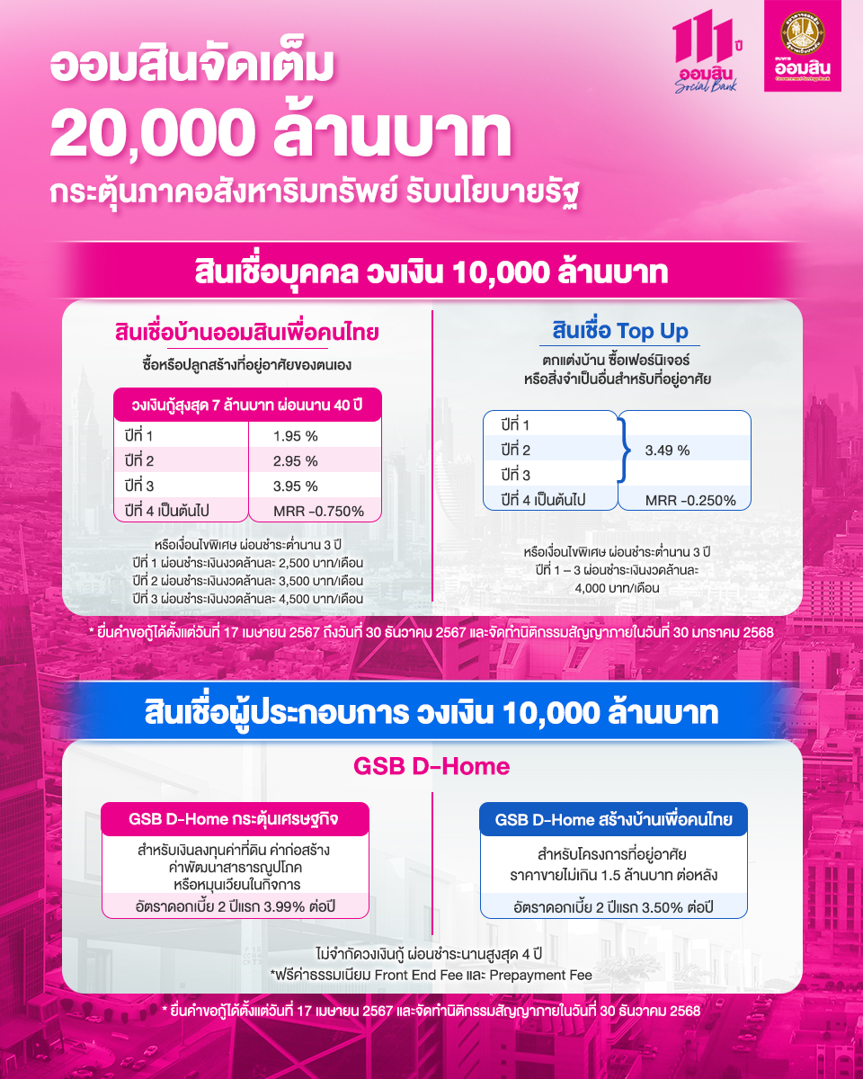 ออมสิน ขานรับนโยบายรัฐ เร่งเครื่องภาคอสังหา อัด 4 โครงการกระตุ้นเศรษฐกิจ
