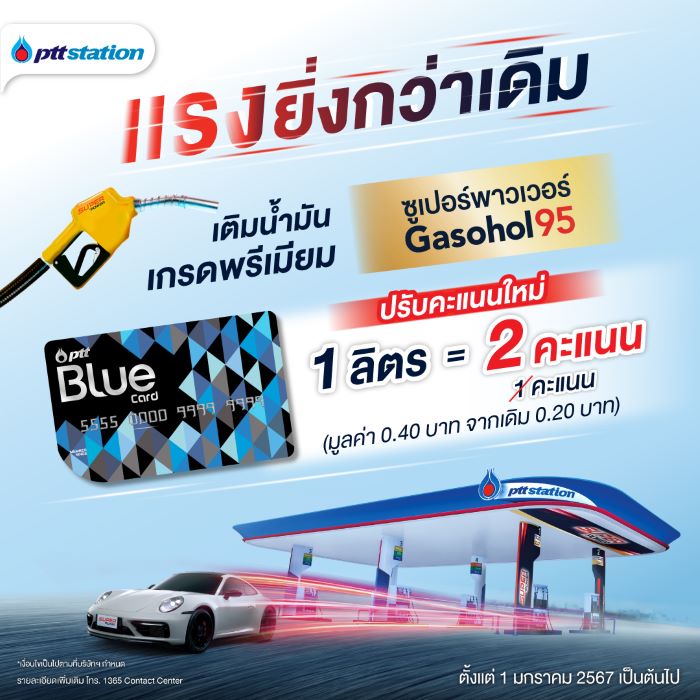 ปรับคะแนนใหม่ แรงยิ่งกว่าเดิม! สมาชิก Blue Card เติมน้ำมัน Super Power Gasohol 95 ไม่มีขั้นต่ำ