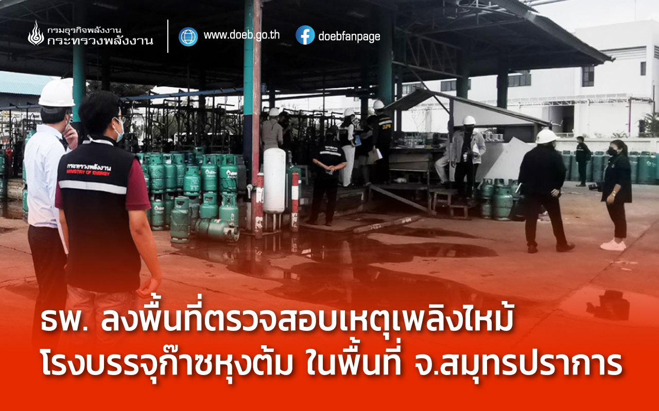 ธพ. ลงพื้นที่ตรวจสอบเหตุเพลิงไหม้ โรงบรรจุก๊าซหุงต้ม ในพื้นที่ จ.สมุทรปราการ