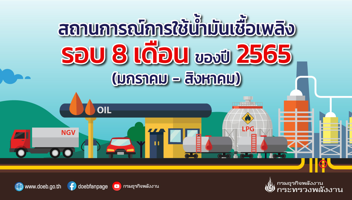 สถานการณ์การใช้น้ำมันเชื้อเพลิงรอบ 8 เดือนของปี 2565 (มกราคม-สิงหาคม)
