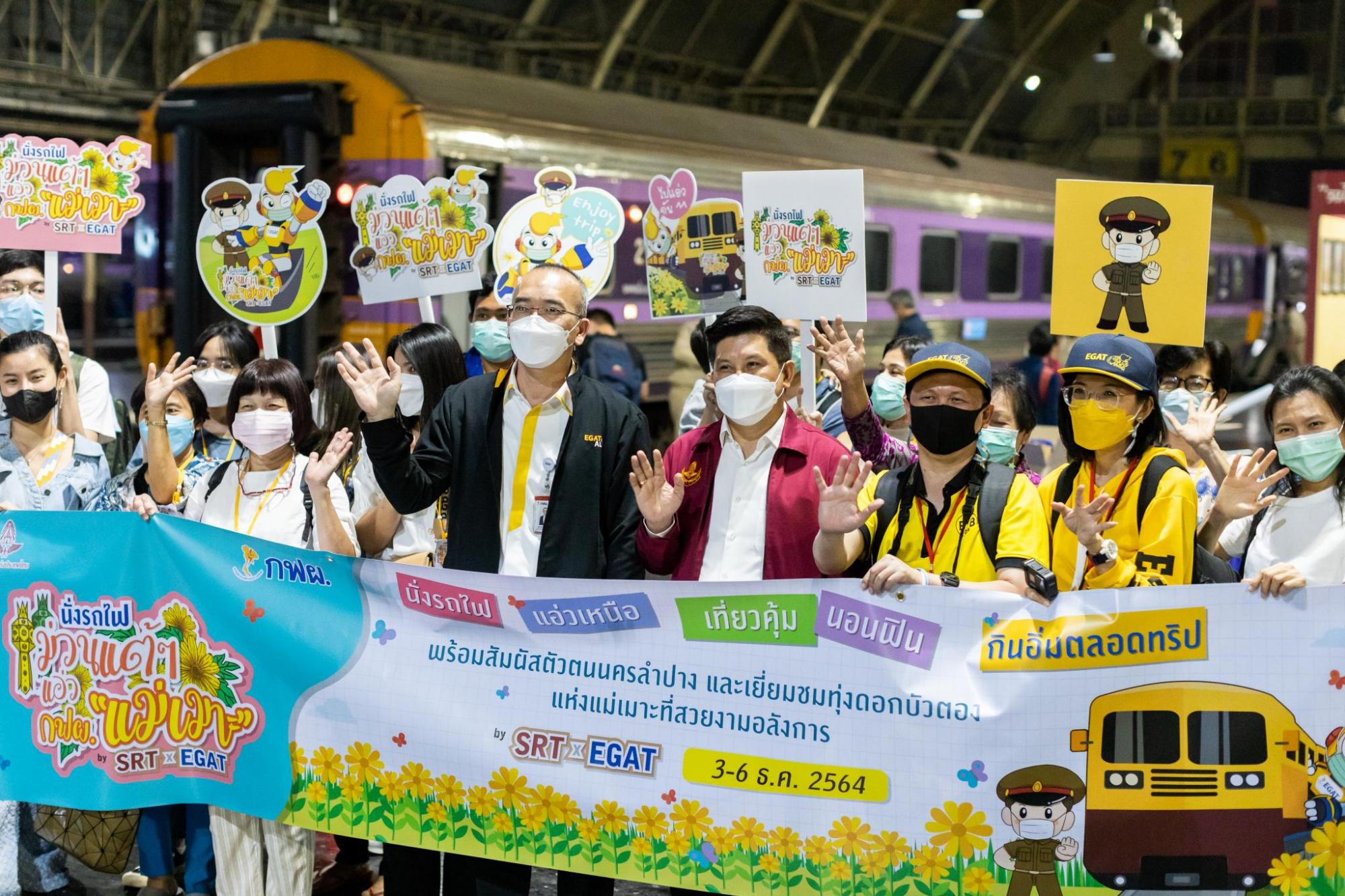 รฟท. - กฟผ. เปิดหวูดความฟิน! นั่งรถไฟรับลมหนาว แอ่วนครลำปาง ชมทุ่งดอกบัวตองที่ กฟผ. แม่เมาะ
