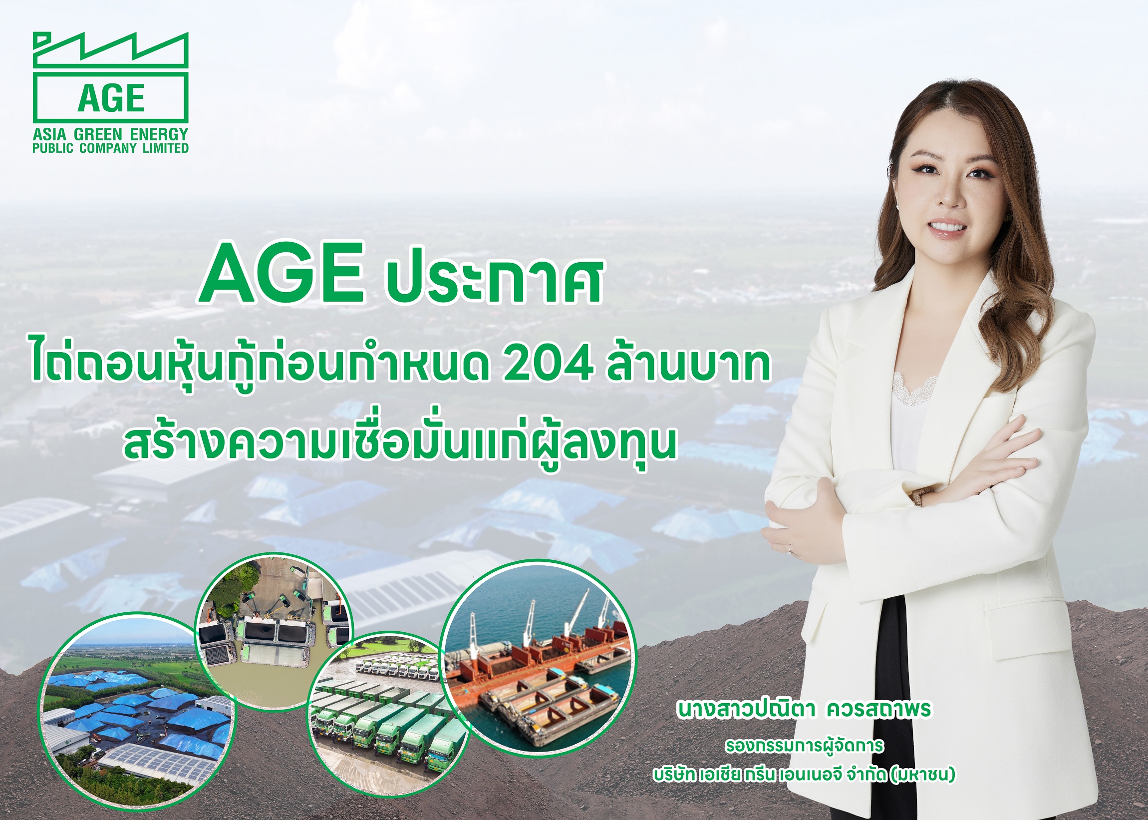 AGE ประกาศไถ่ถอนหุ้นกู้ก่อนกำหนด 204 ลบ. สร้างความเชื่อมั่นแก่ผู้ลงทุน