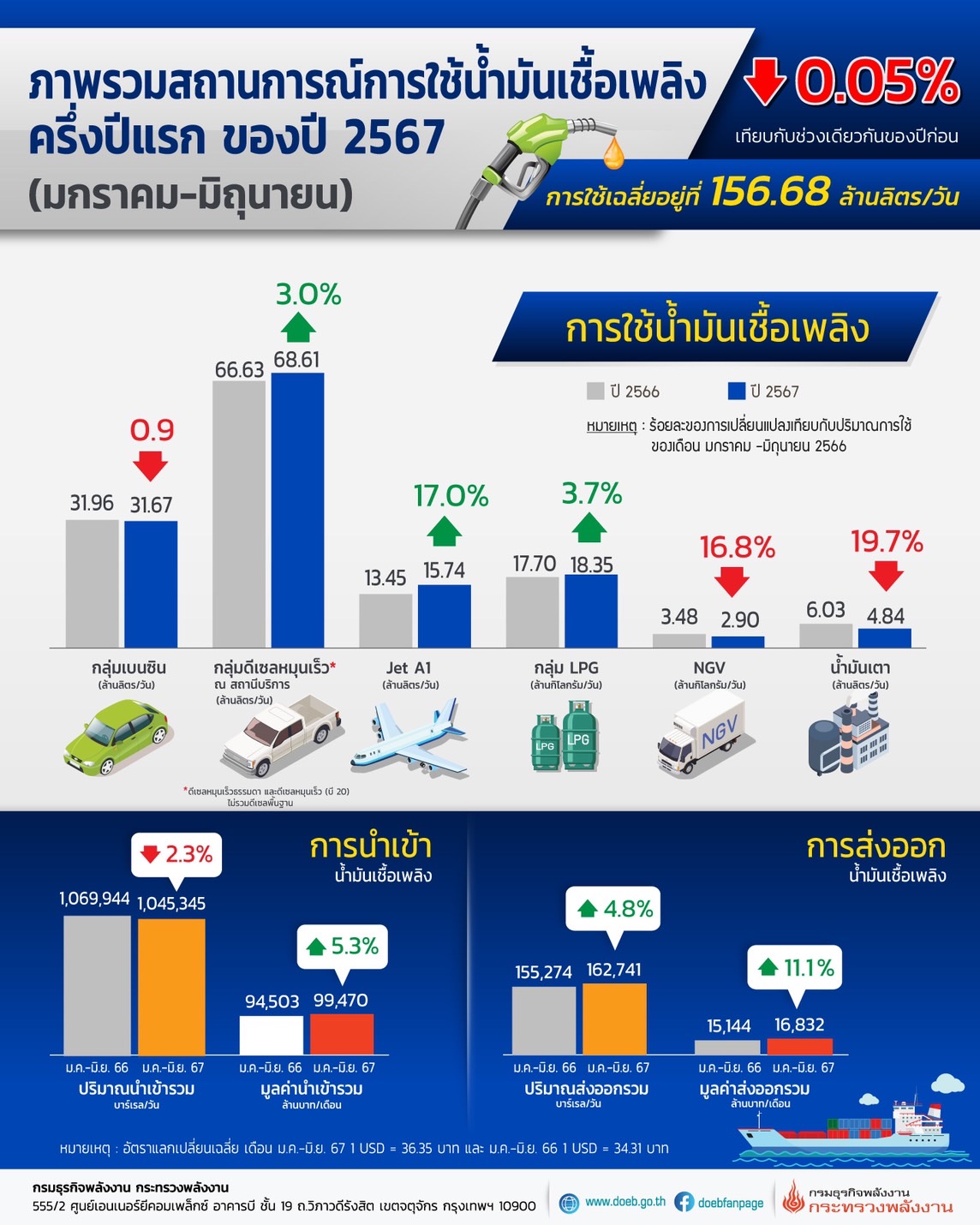 สถานการณ์การใช้น้ำมันเชื้อเพลิงรอบครึ่งปีแรกของปี 2567 (มกราคม – มิถุนายน)
