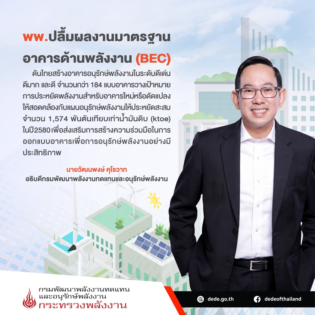 พพ.ปลื้ม! มาตรฐาน BEC ดันไทยสร้างอาคารอนุรักษ์พลังงานระดับ ดีเด่น ดีมาก และดี กว่า 184 แบบอาคาร