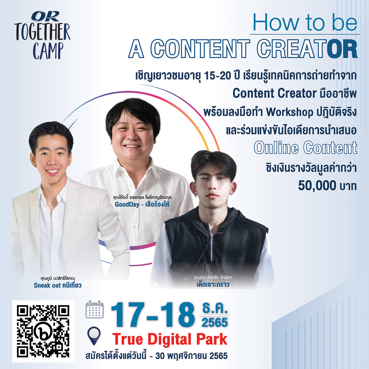 OR ชวนเยาวชนที่มีใจรักทำ Content ร่วมโครงการ OR Together Camp เรียนรู้ไอเดียใหม่ จาก Online Creator ชื่อดัง
