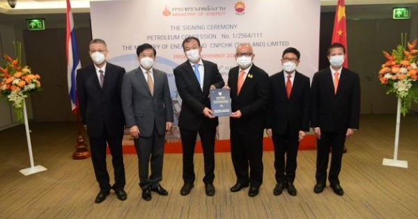 วันนี้ (19 พฤศจิกายน 2564) นายสุพัฒนพงษ์ พันธ์มีเชาว์ รองนายกรัฐมนตรีและรัฐมนตรีว่าการกระทรวงพลังงาน นายกุลิศ สมบัติศิริ ปลัดกระทรวงพลังงาน พร้อมด้วยนายสราวุธ แก้วตาทิพย์ อธิบดี กรมเชื้อเพลิงธรรมชาติ ได้ร่วมพิธีลงนามสัมปทานปิโตรเลียม สำหรับแปลงสำรวจบนบกหมายเลข L1/64 ในเขตจังหวัดสุโขทัยและกำแพงเพชร กับบริษัท ซีเอ็นพีซีเอชเค (ไทยแลนด์) จำกัด ณ ห้องประชุม 9 ชั้น 15 กระทรวงพลังงาน โดยมี ฯพณฯ หาน จื้อเฉียง เอกอัครราชทูตสาธารณรัฐประชาชนจีน ประจำประเทศไทย ให้เกียรติเข้าร่วมพิธีลงนามสัมปทานปิโตรเลียมดังกล่าวด้วย