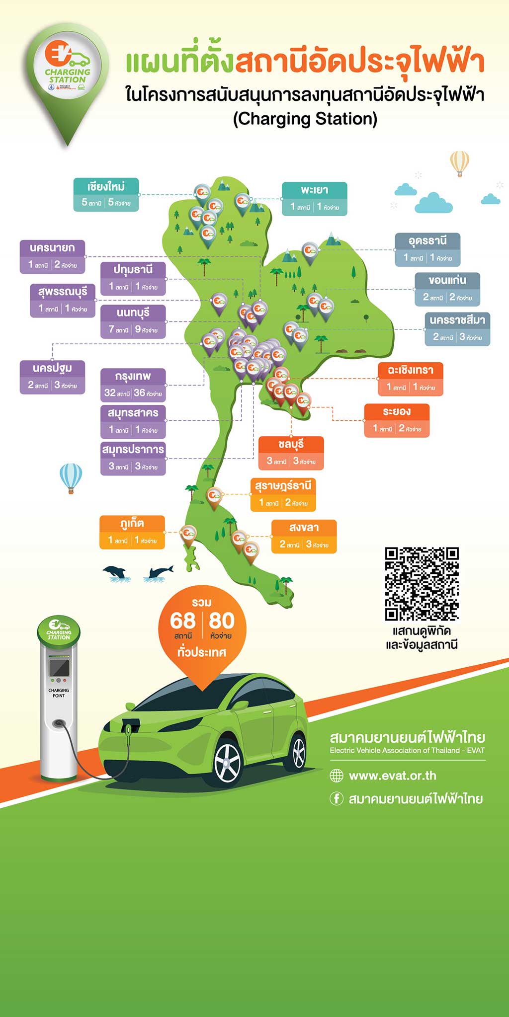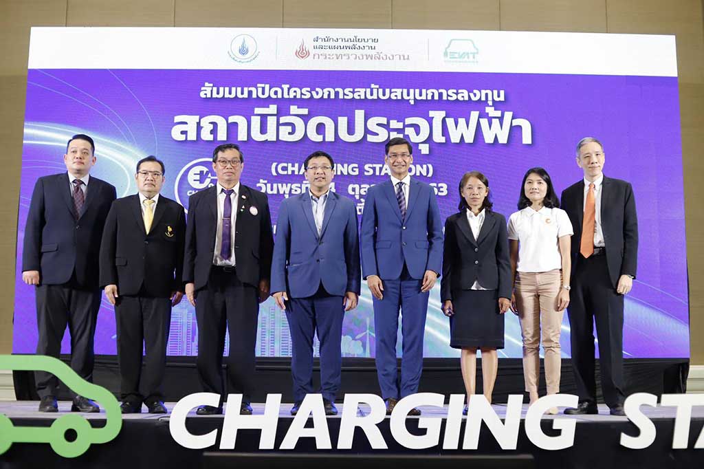 นายกฤษฎา อุตตโมทย์ นายกสมาคมยานยนต์ไฟฟ้าไทย (EVAT) กล่าวว่า “โครงการสนับสนุนการลงทุนสถานีอัดประจุไฟฟ้า (Charging Station) ได้รับการสนับสนุนจาก สำนักงานนโยบายและแผนพลังงาน และดำเนินงานโครงการฯ โดยสมาคมยานยนต์ไฟฟ้าไทย เพื่อให้การสนับสนุนแก่หน่วยงานภาครัฐและเอกชนที่สนใจติดตั้งสถานีอัดประจุไฟฟ้า ซึ่งจะเป็นสถานีนำร่องสำหรับรองรับยานยนต์ไฟฟ้าที่จะเพิ่มขึ้นในอนาคต จากการเปิดรับสมัครเข้าร่วมโครงการฯ ที่ผ่านมา มีผู้เข้าร่วมโครงการจากหน่วยงานทั้งภาครัฐและเอกชนทั่วประเทศ จำนวน 68 หน่วยงาน รวมทั้งสิ้น 80 หัวจ่าย โดยมีรูปแบบการส่งข้อมูลด้านพลังงานผ่านระบบ OCPP และ Smart Meter รวมถึงรูปแบบการใช้บัตร RFID สำหรับการใช้บริการอัดประจุไฟฟ้าโดยเปิดให้ประชาชนทั่วไปสมัครรับบัตรเพื่อทดลองใช้งานในช่วงเวลาดำเนินโครงการ ทั้งนี้ มีผู้ให้ความสนใจขอรับบัตร RFID กว่า 600 ราย