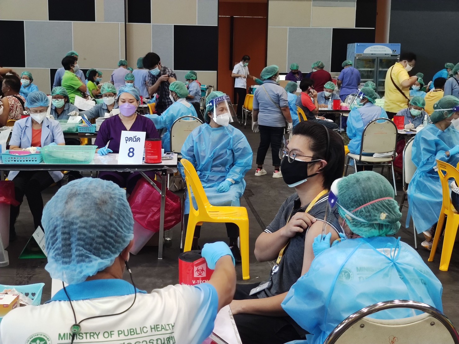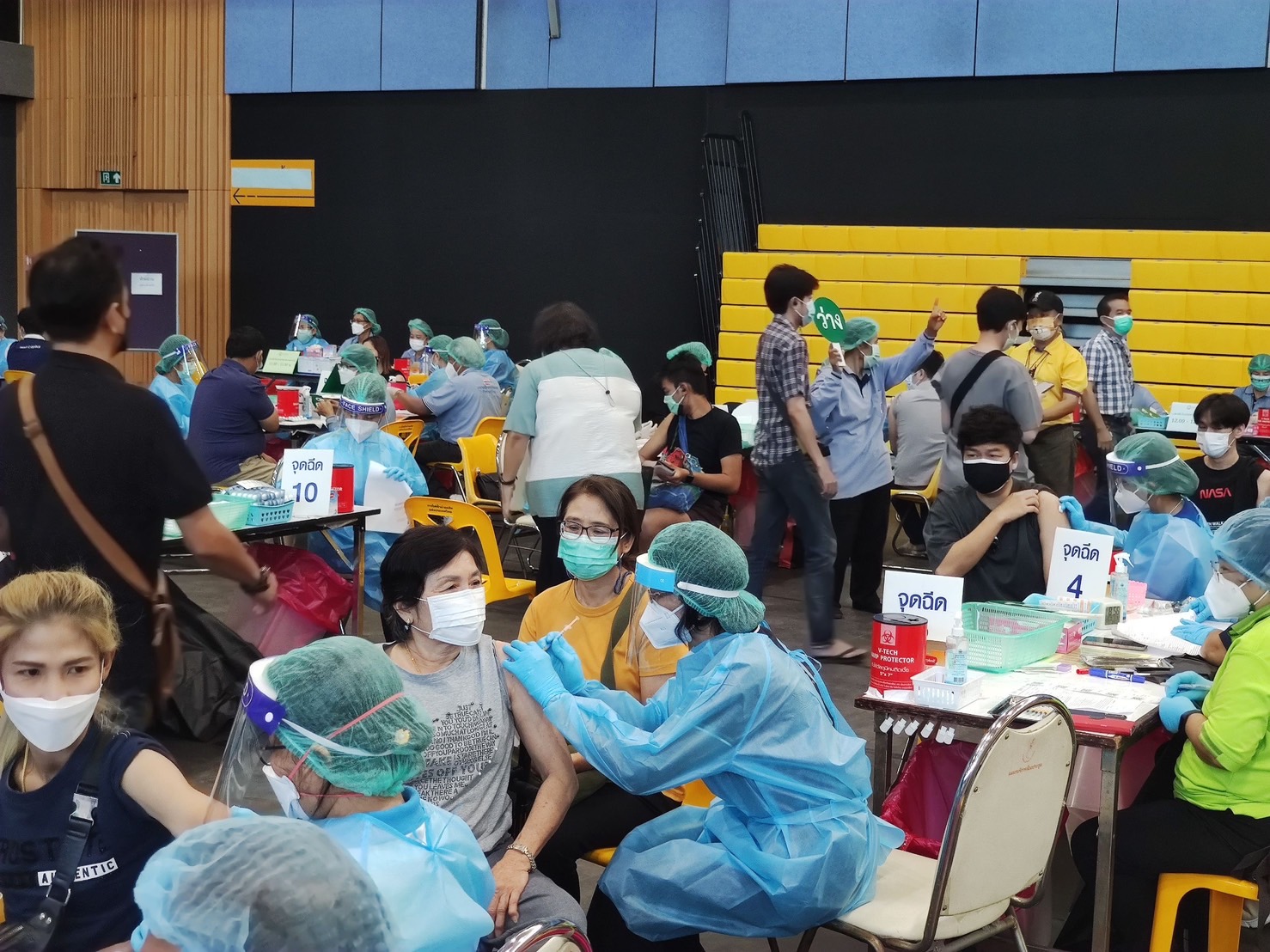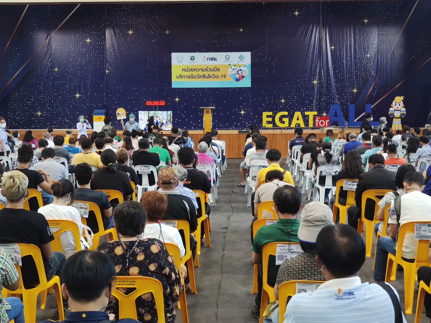 ทั้งนี้ที่ผ่านมา กฟผ. เปิดศูนย์ฉีดวัคซีน ณ ศูนย์กีฬากำธน สินธวานนท์ กฟผ. ตั้งแต่วันที่ 27 กันยายน 2564 - 5 มกราคม 2565 มียอดการให้บริการฉีดวัคซีนแก่คนไทยไปแล้วกว่า 185,000 คน ซึ่งนอกเหนือจากสถานที่แล้ว กฟผ. ยังให้การสนับสนุนด้านระบบคอมพิวเตอร์ จำนวน 60 เครื่อง และด้านจิตอาสา กฟผ. จำนวนกว่า 70 คน ต่อวัน ที่มาช่วยจัดระเบียบ ดูแลความเรียบร้อย และคีย์ข้อมูลเพื่ออำนวยความสะดวกในการให้บริการ และการจัดการด้านต่าง ๆ เพื่อให้ประชาชนได้รับความสะดวกรวดเร็ว และได้รับการฉีดวัคซีนให้มากที่สุด