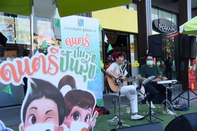 นางกลอยตา ณ ถลาง ผู้ช่วยกรรมการผู้จัดการใหญ่ สายงานบริหารความยั่งยืนและสื่อสารองค์กร นายเสรี อนุพันธนันท์ รักษาการผู้ช่วยกรรมการผู้จัดการใหญ่ บริษัท บางจาก คอร์ปอเรชั่น จำกัด (มหาชน) และกรรมการผู้จัดการ บริษัท บางจาก รีเทล จำกัด พร้อมด้วย คุณสุดา ชื่นบาน อุปนายกฝ่ายบริหารสมาคมดนตรีแห่งประเทศไทยในพระบรมราชูปถัมภ์ ร่วมเปิดกิจกรรม “บางจากปันน้ำใจ สู้ภัยโควิด-19 ดนตรีปันสุข” ที่บางจากฯ จัดขึ้นเพื่อช่วยเหลือศิลปินนักดนตรีที่ได้รับผลกระทบจากมาตรการควบคุมโควิด-19 และไม่สามารถเปิดการแสดงตามสถานบันเทิงได้ ด้วยการเปิดพื้นที่ปั๊มบางจากและสนับสนุนค่าใช้จ่ายให้เหล่าศิลปินหมุนเวียนมาแสดงดนตรีสร้างความเพลิดเพลินให้กับลูกค้าที่มาใช้บริการต่าง ๆ ในปั๊มน้ำมันบางจาก สาขาศรีนครินทร์ สาขาพัฒนาการ 34 และสาขากาญจนาภิเษก กม. 41 และจะขยายสู่พื้นที่ปั๊มบางจากในต่างจังหวัดต่อไป