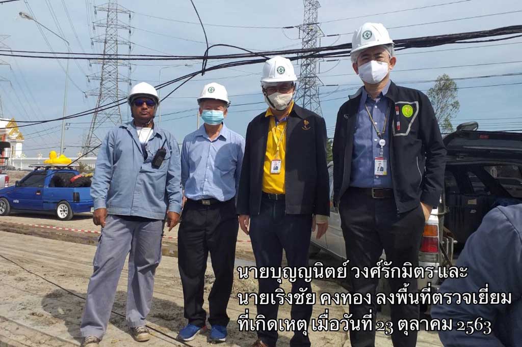 โดยเมื่อวานนี้ นายบุญญนิตย์ วงศ์รักมิตร รองผู้ว่าการอาวุโส และนายเริงชัย คงทอง รองผู้ว่าการระบบส่ง กฟผ. ได้ลงพื้นที่ตรวจเยี่ยมสถานที่เกิดเหตุและสำรวจความเสียหายของเสาและสายส่งไฟฟ้าแรงสูง และอุปกรณ์ระบบส่งไฟฟ้าของ กฟผ. ที่ได้รับผลกระทบจากเหตุเพลิงไหม้ดังกล่าว ซึ่งส่งผลให้สายส่งไฟฟ้าแรงสูง 230 กิโลโวลต์ (kV) คลองใหม่ - ลำลูกกา วงจร 1 และ 2 สายขาดทั้ง 2 วงจร และสายส่ง 230 kV บางปะกง - หนองจอก วงจร 1 ไม่สามารถนำเข้าใช้งานได้ แต่ไม่ส่งผลกระทบต่อระบบไฟฟ้าและการใช้ไฟฟ้าของประชาชน ทั้งนี้ ผู้บริหาร กฟผ. ได้กำชับทีมงานที่เกี่ยวทุกฝ่ายให้เร่งซ่อมแซมความเสียหายและเก็บกู้สายส่งไฟฟ้า เพื่ออำนวยความสะดวกให้แก่หน่วยงานที่เกี่ยวข้องเข้าระงับเหตุ และเพื่อให้ประชาชนในพื้นที่สามารถสัญจรได้ในทันที โดยคำนึงถึงความปลอดภัยของประชาชนเป็นหลัก ซึ่งคาดว่าจะแล้วเสร็จประมาณวันที่ 27 ตุลาคม 2563