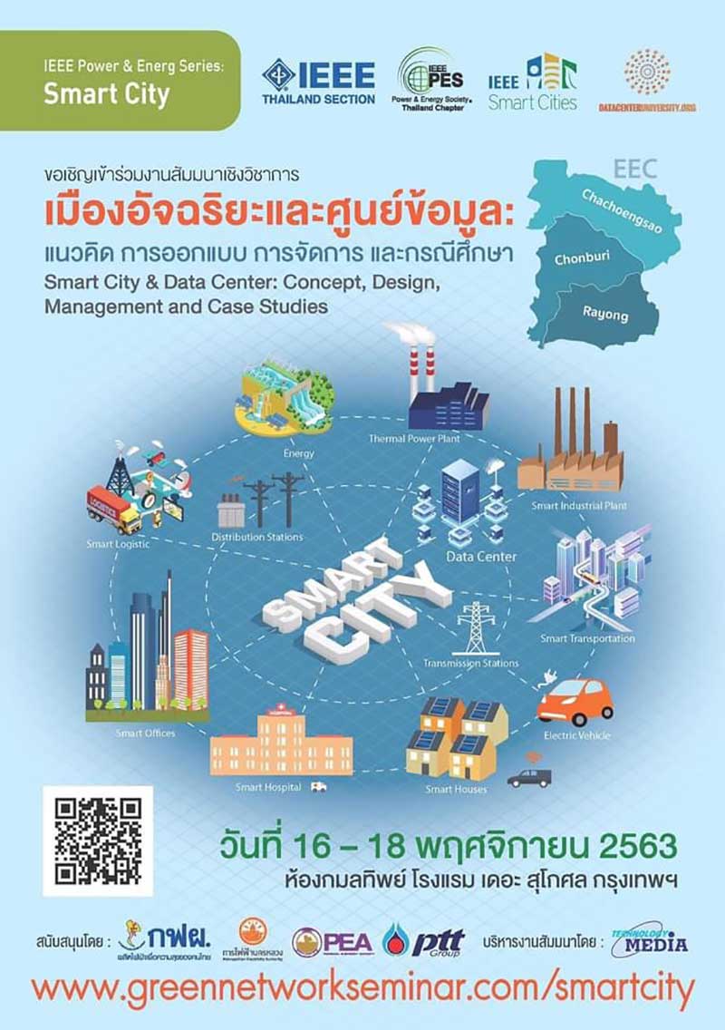 สมาคมสถาบันวิศวกรไฟฟ้าและอิเล็คโทรนิคส์แห่งประเทศไทย (IEEE Thailand Section) และ IEEE Power & Energy Society - Thailand Chapter ได้จัดการสัมมนาเชิงวิชาการเรื่อง “เมืองอัจฉริยะและศูนย์ข้อมูล: แนวคิด การออกแบบ การจัดการ และกรณีศึกษา”ขึ้น ระหว่างวันที่ 16 – 18 พฤศจิกายน 2563 เวลา 08.30 – 16.30 น. ณ โรงแรม เดอะ สุโกศล กรุงเทพฯ