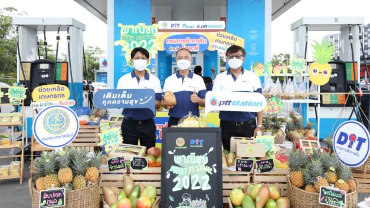 นายวัฒนศักย์ เสือเอี่ยม อธิบดีกรมการค้าภายใน กระทวงพาณิชย์ และนายบุญมา พนธนกรกุล รองกรรมการผู้จัดการใหญ่ธุรกิจค้าปลีกน้ำมัน บริษัท ปตท. น้ำมันและการค้าปลีก จำกัด (มหาชน) (โออาร์) ร่วมเปิดโครงการพื้นที่ปันสุข ที่ พีทีที สเตชั่น เพื่อเติมเต็มรอยยิ้มให้เกษตรกรไทย ที่ได้รับผลกระทบผลจากชะลอตัวของการรับซื้อผลผลิต ส่งผลต่อการระบายผลผลิตออกสู่ตลาดและเสถียรภาพทางด้านราคา โดย โออาร์ รับซื้อผลผลิตมะม่วงแฟนซี และสับปะรดภูแล จากเกษตกรในภาคเหนือ รวมกว่า 300,000 กิโลกรัม นำมาจัดกิจกรรมให้กับลูกค้าผู้เติมน้ำมันชนิดใดก็ได้ครบ 300 บาทขึ้นไปต่อใบเสร็จ รับฟรีมะม่วงแฟนซี หรือสับปะรดภูแล จำนวน 1 ถุง ณ พีทีที สเตชั่น ในพื้นที่จังหวัดกรุงเทพฯ นนทบุรี ปทุมธานี และสมุทรปราการ ที่ร่วมรายการ ระหว่างวันที่ 20-22 พฤษภาคม 2565 นี้