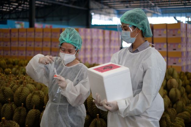 โดยจะเริ่มนำร่องให้บริการตรวจหาเชื้อโควิด-19 ที่อาจปนเปื้อนอยู่บนทุเรียนที่เตรียมส่งออกในพื้นที่เขตภาคตะวันออก จำนวน 2,000 ตัวอย่าง โดยไม่มีค่าใช้จ่าย แม้ว่าขณะนี้ประเทศไทยจะยังไม่มีห้องแลบตรวจหาสารพันธุกรรมของเชื้อ SARS-CoV-2 ปนเปื้อนในสินค้าเกษตร ที่ได้รับการรับรองอย่างเป็นทางการจากประเทศจีน แต่ความร่วมมือในครั้งนี้จะช่วยเสริมสร้างความเชื่อมั่นให้ผู้บริโภคและประเทศคู่ค้า อีกทั้งบรรเทาความเดือดร้อนของเกษตรกรและสนับสนุนการดำเนินงานของภาครัฐ เพื่อพลิกฟื้นเศรษฐกิจและธุรกิจโลจิสติกส์ของไทยในเวทีโลกให้เติบโต แข็งแกร่ง และเป็นศูนย์กลางการส่งออกทางการเกษตรที่สำคัญของภูมิภาคอาเซียนต่อไป