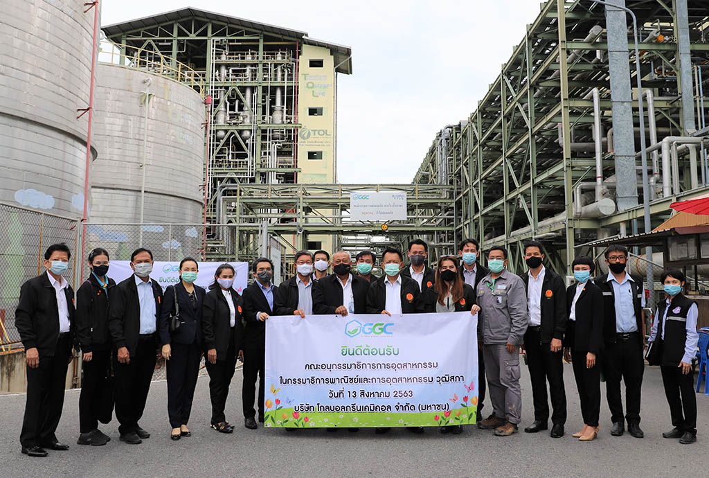 นายสมชาย หาญหิรัญ รองประธานคณะกรรมาธิการ คนที่หนึ่ง (ลำดับที่ 7 จากขวา) และคณะอนุกรรมาธิการการอุตสาหกรรมในกรรมาธิการการพาณิชย์และการอุตสาหกรรม วุฒิสภา เข้าร่วมรับฟังบรรยายการดำเนินธุรกิจและกระบวนการผลิตเมทิลเอสเทอร์ (B100) จากปาล์มน้ำมันและภาพรวมธุรกิจของบริษัท โกลบอลกรีนเคมิคอล จำกัด (มหาชน) พร้อมเยี่ยมชมโรงงานผลิตเมทิลเอสเทอร์แห่งที่ 1 ของบริษัทฯ โดยมีนายนิคม เกษมปุระ ผู้ช่วยกรรมการผู้จัดการ สายงานการปฎิบัติการที่เป็นเลิศ (ลำดับที่ 8 จากซ้าย) พร้อมด้วยผู้บริหารของบริษัท โกลบอลกรีนเคมิคอล จำกัด (มหาชน) ร่วมให้การต้อนรับ ณ โรงงานผลิตเมทิลเอสเทอร์แห่งที่ 1 จังหวัดระยอง