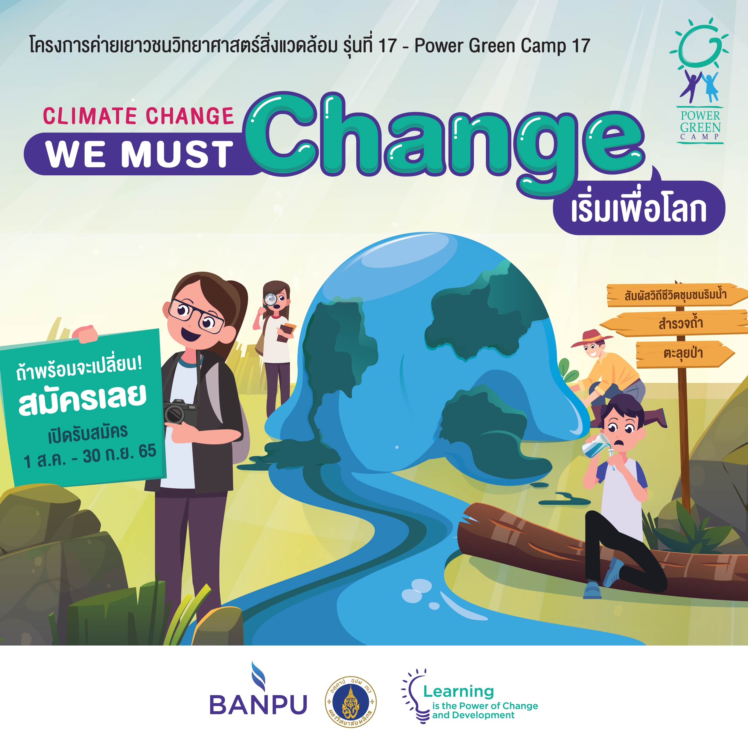 บริษัท บ้านปู จำกัด (มหาชน) ผู้นำด้านพลังงานที่หลากหลายในระดับนานาชาติ ร่วมกับ คณะสิ่งแวดล้อมและทรัพยากรศาสตร์ มหาวิทยาลัยมหิดล ขอเชิญชวนเยาวชนหัวใจสีเขียวที่กำลังศึกษาอยู่ระดับชั้นมัธยมศึกษาตอนปลาย (ไม่จำกัดแผนการเรียน) และระดับประกาศนียบัตรวิชาชีพ (ปวช.) ทั่วประเทศ สมัครเข้าร่วมค่ายเยาวชนวิทยาศาสตร์สิ่งแวดล้อม (Power Green Camp) ครั้งที่ 17 ภายใต้หัวข้อ “Climate Change, We Must Change – เริ่มเพื่อโลก” เรียนรู้ทุกประเด็นการเปลี่ยนแปลงสภาพภูมิอากาศ (Climate Change) ทั้งภาคทฤษฎีแบบจัดเต็ม และการลงพื้นที่จริงในถ้ำ อุทยานและชายฝั่งทะเล ก่อนตกผลึกไอเดียพัฒนาโครงงานวิทยาศาสตร์สิ่งแวดล้อมสุดเจ๋ง ชิงทุนการศึกษา พร้อมเกียรติบัตรและถ้วยรางวัล มุ่งส่งเสริมเยาวชนนำองค์ความรู้ไปประยุกต์แก้ปัญหาทรัพยากรทางธรรมชาติและสิ่งแวดล้อมในระดับชุมชน สังคม และประเทศชาติ ซึ่งจะเป็นรากฐานนำไปสู่การพัฒนาคุณภาพชีวิตที่ดีและยั่งยืนในอนาคต โดยในปีนี้กิจกรรมจะจัดขึ้นในรูปแบบผสมผสาน (Hybrid) ระหว่างการเรียนออนไลน์และกิจกรรมภาคสนาม