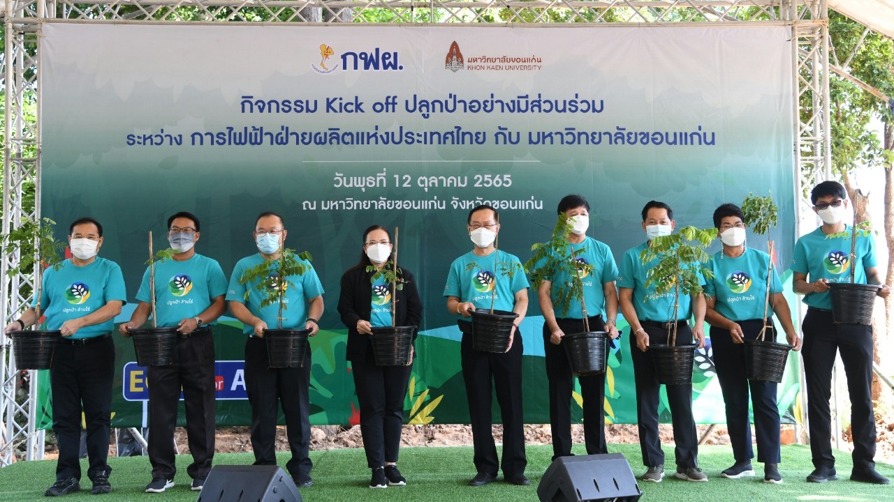 รศ.นพ.ชาญชัย พานทองวิริยะกุล อธิการบดีมหาวิทยาลัยขอนแก่น กล่าวว่า ความร่วมมือระหว่างมหาวิทยาลัยขอนแก่นกับ กฟผ. ภายใต้โครงการปลูกป่าอย่างมีส่วนร่วม สอดรับกับพันธกิจของมหาวิทยาลัยที่มุ่งสู่การเป็นมหาวิทยาลัยสีเขียว พัฒนาพื้นที่ต้นแบบเกษตรและป่าไม้ยั่งยืนในสถานศึกษาอย่างมีส่วนร่วม โดยปลูกป่าร่วมกับพืชสมุนไพรและพืชเศรษฐกิจอื่น ๆ ควบคู่กับการเพิ่มพื้นที่ป่าถาวรในชุมชน รวมถึงการพัฒนาเทคโนโลยีด้านการเกษตรและป่าไม้เพื่อสร้างการมีส่วนร่วมในการผลิตและอนุบาลกล้าไม้อย่างมีประสิทธิภาพสู่ชุมชนต่อไป