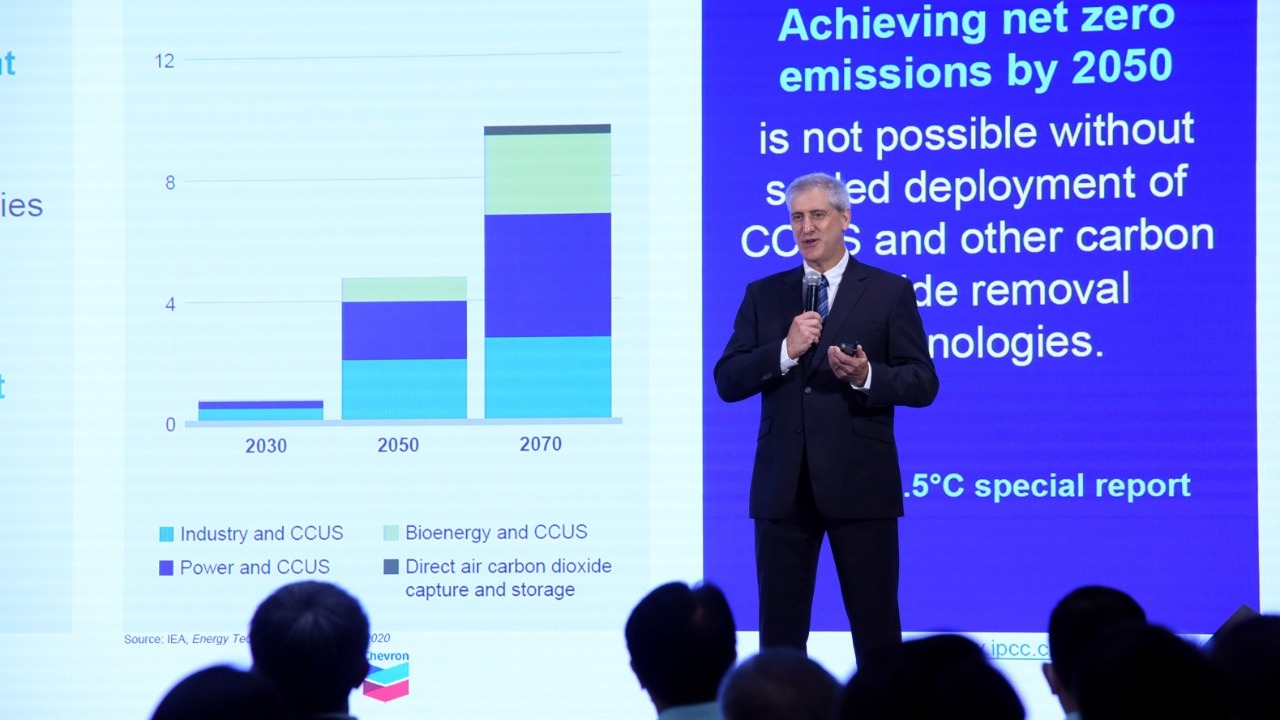 ภายในงาน ยังได้รับเกียรติจากวิทยากรผู้ทรงคุณวุฒิที่มาร่วมนาเสนอข้อมูลล่าสุดทั้งในระดับโลกและระดับประเทศ ในหัวข้อ “Global Energy Outlook and Energy Transition” โดย Mr. Roberto Bocca, Head of Platform for Shaping the Future of Energy, Materials and Infrastructure, World Economic Forum องค์กรระดับโลกที่มีชื่อเสียงเป็นที่รู้จักในเรื่องการดาเนินกิจกรรมเพื่อเสนอแนะทิศทางในการกำหนดนโยบายด้านเศรษฐกิจ สังคม และการพัฒนาในระดับระหว่างประเทศ หัวข้อ “Gold Hydrogen: Key to Net Zero Economy” โดย Mr. Moji Karimi, Co-Founder and CEO, Cemvita Factory Inc. สตาร์ทอัพจากสหรัฐอเมริกา หัวข้อ “Advancing a Lower Carbon Future with Carbon Capture, Utilization and Storage (CCUS)” โดย Mr. Robert Dobrik, Chief Executive Officer, Star Petroleum Refining Co., Ltd. หัวข้อ “Innovating CO2 Recovery Technology” โดย Mr. Aniruddha Sharma, Co-Founder and CEO, Carbon Clean Solutions Limited สตาร์ทอัพจากสหราชอาณาจักร และหัวข้อ “Nature-Based Solutions” โดยผู้บริหารจากเชลล์ Ms. Flora Ji Qing, Global Vice President, Nature-Based Solutions