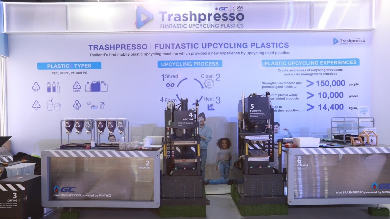 นอกจากนั้น ยังนำเครื่อง “Trashpresso” โรงงานรีไซเคิลขยะพลาสติกเคลื่อนที่แบบครบวงจรเครื่องแรกของประเทศที่ให้ผู้เข้าชมสามารถเปิดประสบการณ์อัพไซคลิงด้วยการเปลี่ยนฝาขวดน้ำพลาสติกใช้แล้วให้กลายเป็นผลิตภัณฑ์ใหม่ที่มีมูลค่าเพิ่มในเวลาเพียง 5 นาที