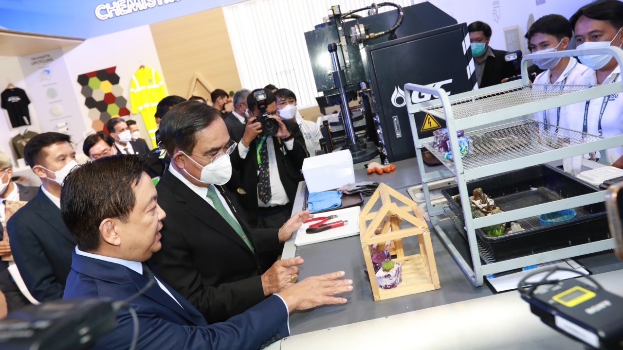 การจัดแสดงนิทรรศการ BCG ของ GC ประกอบด้วยการพัฒนาและปรับใช้นวัตกรรมและเทคโนโลยีที่หลากหลาย เพื่อให้เกิดการดำเนินธุรกิจอย่างมีประสิทธิภาพ เพิ่มมูลค่าให้กับทรัพยากร สร้างการเติบโตทางเศรษฐกิจอย่างยั่งยืนให้กับประเทศ มุ่งสู่การลดการปล่อยก๊าซเรือนกระจกสุทธิเป็นศูนย์ (NET ZERO) ภายในปี พ.ศ. 2593 สอดคล้องกับเป้าหมายการลดการปล่อยก๊าซเรือนกระจกของประเทศ ร่วมขับเคลื่อนสังคมไทยสู่สังคมคาร์บอนต่ำ โดยมีไฮไลท์ ที่สำคัญ อาทิ บ้าน Upcycling จำลอง ที่องค์ประกอบของบ้านล้วนทำมาจากวัสดุที่ผ่านกระบวนการ Upcycling อาทิ อิฐก่อผนัง หลังคา แผ่นกั้นห้อง แผงอะคูสติกดูดซับเสียง เฟอร์นิเจอร์ รวมถึงของใช้และของประดับตกแต่ง เป็นต้น การจัดแสดงนวัตกรรมพลาสติกชีวภาพ พลาสติกวิศวกรรมขั้นสูง รวมถึงผลิตภัณฑ์ปล่อยสารระเหยต่ำ