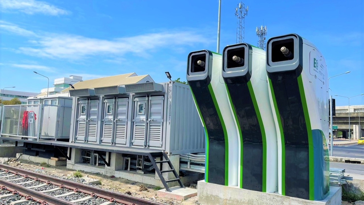 บริษัท พลังงานบริสุทธิ์ จำกัด (มหาชน) หรือ EA ร่วมกับ CRRC Dalian ผู้ผลิตรถไฟรายใหญ่จากประเทศจีน ได้รับโอกาสจากกระทรวงคมนาคม โดยการรถไฟแห่งประเทศไทย (รฟท.) และสถาบันเทคโนโลยีพระจอมเกล้าเจ้าคุณทหารลาดกระบัง ผลักดันนโยบาย EV on Train พร้อมร่วมมือกับภาควิชาการ เริ่มทดสอบระบบสับเปลี่ยนขบวน (Shunting) ณ สถานีกลางกรุงเทพอภิวัฒน์ โดยหัวรถจักรไฟฟ้า (EV) หรือ “MINE Locomotive” แบตเตอรี่ขนาด 4.1 MWh สามารถวิ่งได้ระยะกว่า 300 กิโลเมตร ผสานเทคโนโลยีการอัดประจุ Ultra-Fast Charge ของ EA Anywhere ใช้เวลาชาร์จเพียง 1 ชั่วโมง และประหยัดต้นทุนพลังงานได้กว่า 40% เมื่อเปรียบเทียบกับหัวรถจักรดีเซล