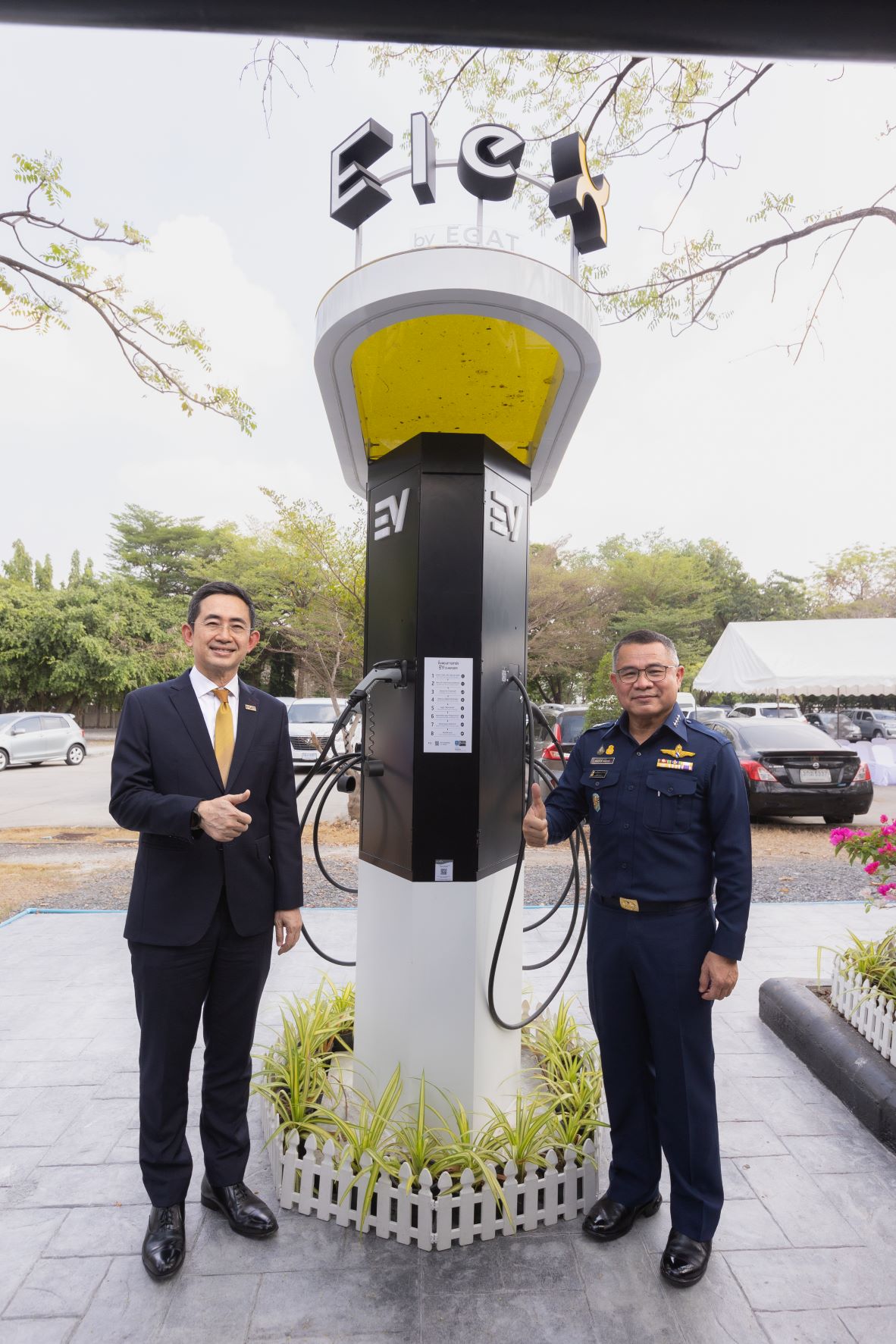 พลอากาศเอก พันธ์ภักดี พัฒนกุล ผู้ช่วยผู้บัญชาการทหารอากาศ พร้อมด้วยนายบุญญนิตย์ วงศ์รักมิตร ผู้ว่าการการไฟฟ้าฝ่ายผลิตแห่งประเทศไทย (กฟผ.) และผู้บริหารระดับสูงจาก ทั้งสองหน่วยงาน ร่วมเป็นเกียรติในพิธีเปิดให้บริการสถานีชาร์จ EleX by EGAT ในพื้นที่กองทัพอากาศแห่งแรก ณ กองบัญชาการกองทัพอากาศ ดอนเมือง กรุงเทพฯ