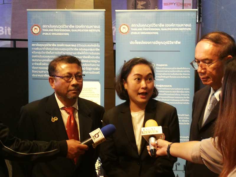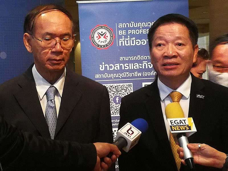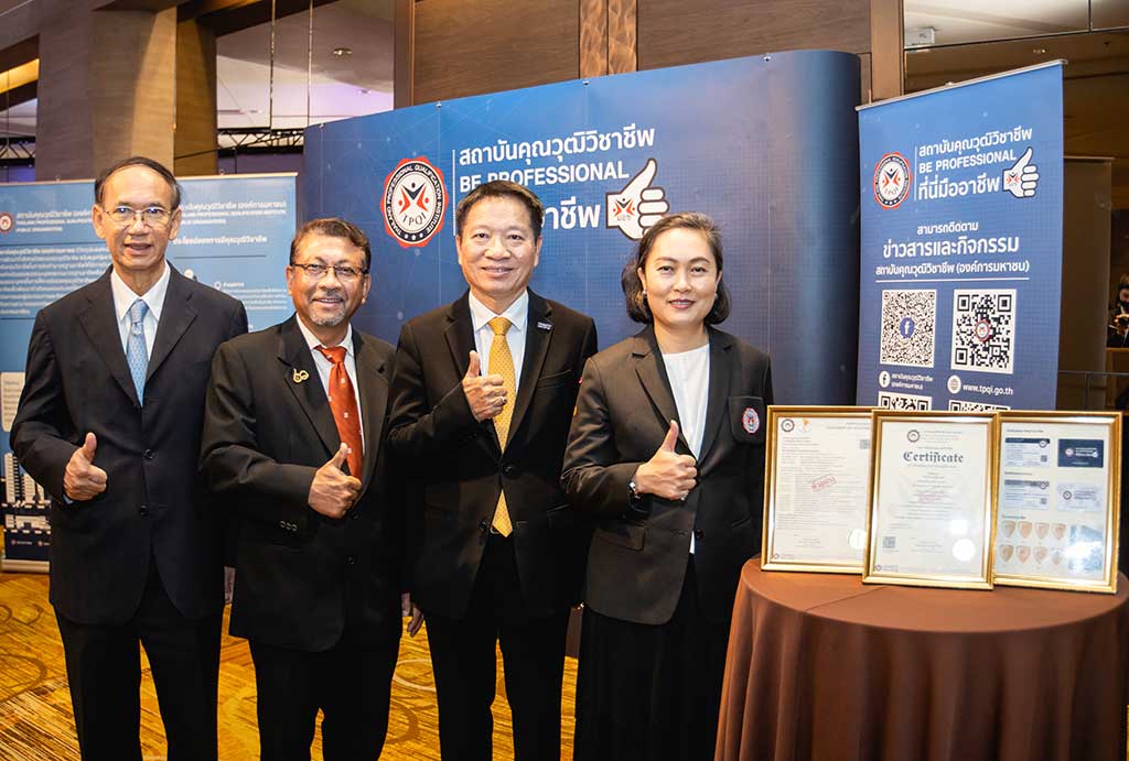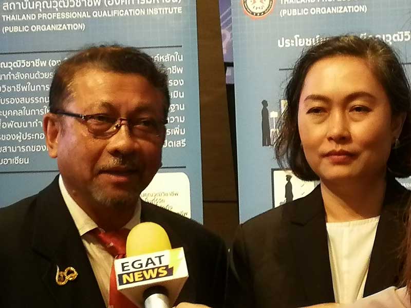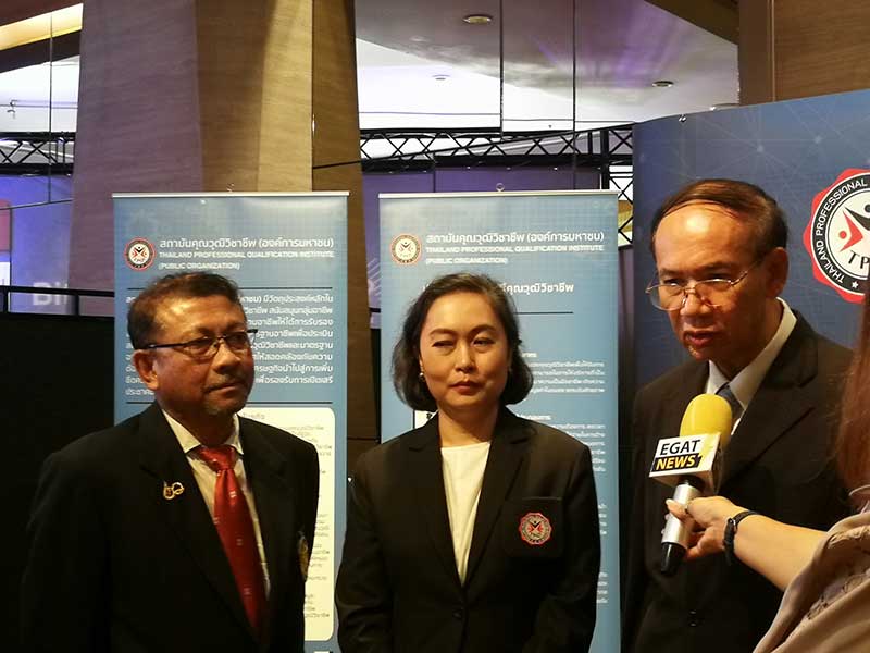 นางสาวจุลลดา มีจุล รองผู้อำนวยการสถาบันคุณวุฒิวิชาชีพ (องค์การมหาชน) พร้อมด้วย ผศ.ดร.กูสกานา กูบาฮา คณบดีคณะพลังงานสิ่งแวดล้อมและวัสดุ มหาวิทยาลัยเทคโนโลยีพระจอมเกล้าธนบุรี นายไกรสีห์ กรรณสูต อดีตผู้ว่าการการไฟฟ้าฝ่ายผลิตแห่งประเทศไทย (กฟผ.) และอดีตกรรมการกำกับกิจการพลังงาน ในฐานะคณะรับรองมาตรฐานอาชีพงานระบบผลิตไฟฟ้า และ ดร.สุทธิชัย จูประเสริฐพร รองผู้ว่าการบริหาร กฟผ. ร่วมแถลงผลการจัดทำมาตรฐานอาชีพและคุณวุฒิวิชาชีพ สาขาวิชาชีพพลังงานและพลังงานทดแทน สาขางานระบบผลิตไฟฟ้า โดยมีผู้แทนจากหน่วยงานภาครัฐ เอกชน สถาบันการศึกษา ผู้ทรงคุณวุฒิในวิชาชีพ บุคลากรผู้ประกอบอาชีพ และองค์กรที่เกี่ยวข้อง เข้าร่วมงาน ณ ห้องวีนัส โรงแรมมิราเคิล แกรนด์ คอนเวนชั่น กรุงเทพฯ
