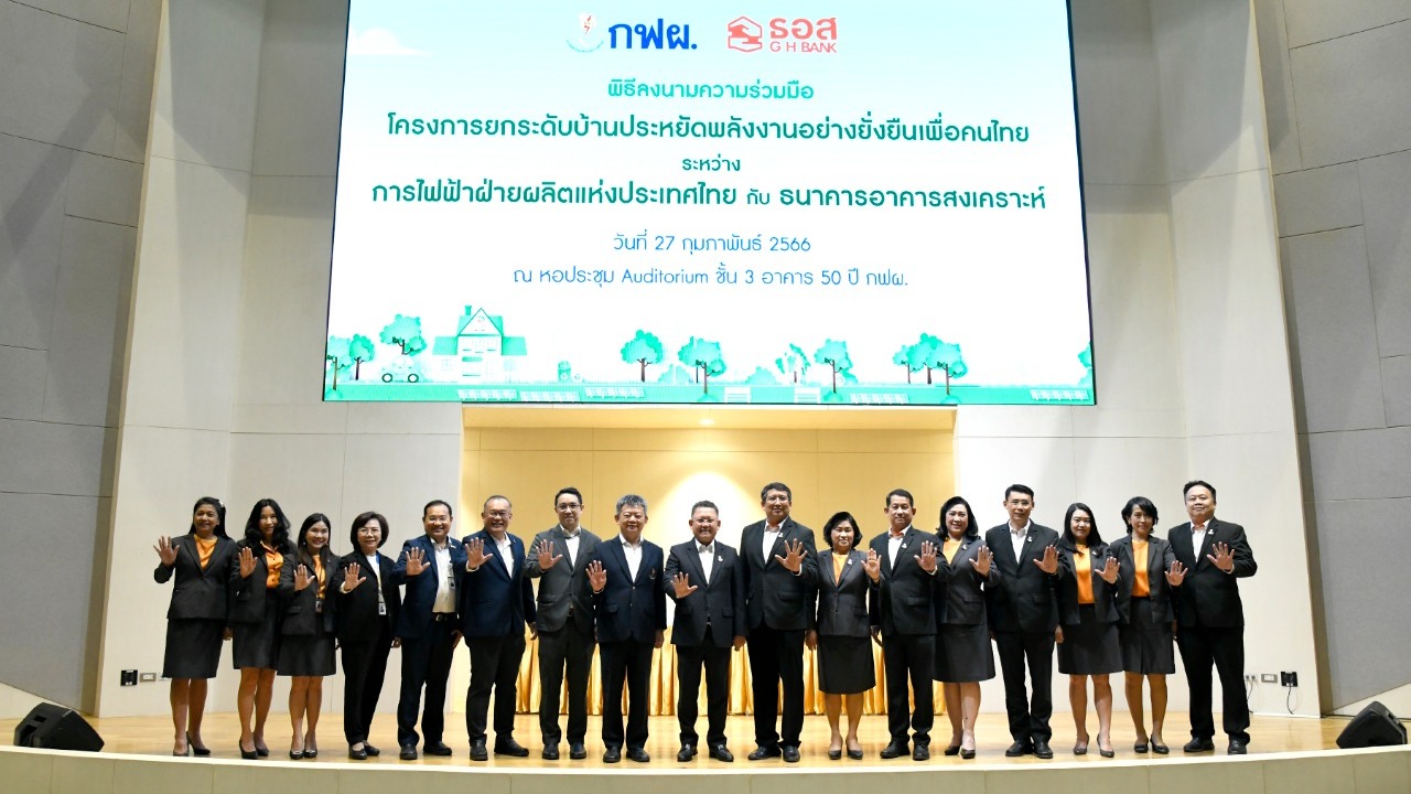 กฟผ. จับมือ ธอส. ส่งเสริมบ้านประหยัดพลังงาน ให้คำปรึกษาการสร้างบ้านเบอร์ 5 ตรวจประเมินแบบบ้าน พร้อมมอบบริการทางการเงินพิเศษ “โครงการบ้านอยู่เย็นเป็นสุข” แก่ผู้ประกอบการที่อยู่อาศัยและประชาชนทั่วไปที่ซื้อหรือสร้างบ้านเบอร์ 5 หวังช่วยลดค่าใช้จ่าย รักษาสิ่งแวดล้อม ร่วมขับเคลื่อนประเทศสู่สังคมคาร์บอนต่ำอย่างยั่งยืน
