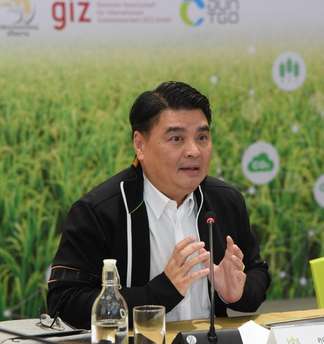 นายจิรวัฒน์ ระติสุนทร รองเลขาธิการสำนักงานแผนและนโยบายทรัพยากรธรรมชาติและสิ่งแวดล้อม กระทรวงทรัพยากรธรรมชาติและสิ่งแวดล้อม กล่าวว่า ขอบคุณทุกภาคส่วนที่ร่วมกันทำให้โครงการนี้เกิดขึ้น โดยเฉพาะอย่างยิ่งเกษตรกรผู้ผลิตข้าวลดโลกร้อนและกลุ่มบริษัทบางจาก ที่มาช่วยต่อยอดให้โครงการให้สำเร็จลุล่วงได้ผ่านบริษัท ออมสุข วิสาหกิจเพื่อสังคม จำกัด เพราะการขยายองค์ความรู้ไปสู่เกษตรกร เมื่อเกษตรกรทำแล้วเห็นประโยชน์จริง ถ้าไม่มีตลาดรองรับ ไม่ก่อให้เกิดรายได้ การดูแลสิ่งแวดล้อมนั้นจะเป็นไปอย่างยั่งยืนได้ยาก การทำนาเปียกสลับแห้ง หรือเรียกอีกชื่อว่า ทำนาแบบ 1 แห้ง 5 ประโยชน์สามารถช่วยลดปริมาณก๊าซมีเทนที่ปล่อยสู่ชั้นบรรยากาศลงได้มาก ซึ่งมีเทนเป็นก๊าซเรือนกระจกที่มีคุณสมบัติทำให้โลกร้อนขึ้นมากกว่าคาร์บอนไดออกไซด์ถึง 27 เท่า การเปลี่ยนทัศนคติในภาคเกษตรกรรมจึงเป็นหนึ่งในกุญแจแห่งความสำเร็จต่อเป้าหมายของประเทศไทยที่จะเป็นกลางทางคาร์บอนในปี ค.ศ. 2050 และปล่อยก๊าซเรือนกระจกสุทธิเป็นศูนย์ได้ในปีค.ศ. 2065