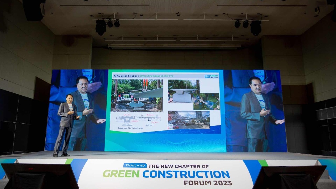 CPAC Green Solution จัดงาน Thailand: The New Chapter of Green Construction Forum 2023 รวมพลังสร้างการเปลี่ยนแปลง สู่อุตสาหกรรมก่อสร้างสีเขียวอย่างยั่งยืน ณ อาคารอเนกประสงค์ เอสซีจี สำนักงานใหญ่ บางซื่อ เมื่อวันพฤหัสบดีที่ 16 มีนาคม 2566 ที่ผ่านมา เพื่อสร้างความตระหนักและกระตุ้นให้เกิดการมีส่วนร่วมของทุกภาคส่วนในการขับเคลื่อนประเทศไทยสู่สังคมคาร์บอนต่ำ โดยเฉพาะอย่างยิ่งผลักดันภาคการก่อสร้างของประเทศไทยให้บรรลุเป้าหมายในการลดการปล่อยก๊าซเรือนกระจกให้ได้มากที่สุด ให้สอดคล้องกับนโยบายของประเทศและระดับโลก