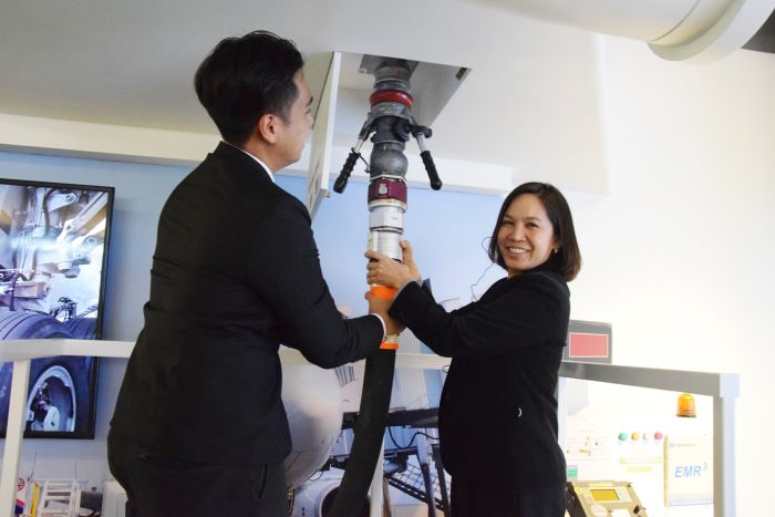 ทั้งนี้ กรมธุรกิจพลังงาน เข้ารับฟังการบรรยายกระบวนการจัดเก็บน้ำมันอากาศยานและการตรวจสอบคุณภาพน้ำมัน ทั้งการรับและเก็บสำรองน้ำมันเชื้อเพลิงอากาศยานพร้อมทั้งสูบจ่ายน้ำมันไปยังสนามบิน ผ่านระบบ Hydrant Pipeline Network ประสิทธิภาพสูงทำให้น้ำมัน Jet A-1 ถูกควบคุมคุณภาพให้เป็นไปตามมาตรฐานสากล ก่อนที่จะจ่ายไปยังสนามบิน พร้อมทั้งศึกษาโครงข่ายระบบท่อส่งน้ำมัน ของ บริษัท ขนส่งน้ำมันทางท่อ จำกัด (FPT) ซึ่งปัจจุบันได้ขยายการให้บริการสู่ภาคเหนือ ผ่านเส้นทาง บางปะอิน-พิจิตร-ลำปาง ซึ่งคาดการณ์ว่าการขนส่งน้ำมันทางท่อสู่ภาคเหนือ แทนการขนส่งทางรถยนต์จะสามารถลดปริมาณการปล่อยคาร์บอนไดออกไซด์ได้ถึง 153,000 Ton CO2 ต่อปี