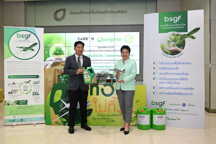 กลุ่มบริษัทบางจากเดินหน้าก้าวสู่การเป็นผู้นำพลังงานแห่งอนาคต ผลิตน้ำมันเชื้อเพลิงอากาศยานยั่งยืน (Sustainable Aviation Fuel) หรือ SAF จากน้ำมันปรุงอาหารใช้แล้ว รายแรกและรายเดียวในประเทศไทย จัดพิธีลงนามในสัญญาก่อสร้างหน่วยผลิตน้ำมันเชื้อเพลิงอากาศยานยั่งยืนระหว่าง บริษัท บีเอสจีเอฟ จำกัด กับบริษัท ทีทีซีแอล จำกัด (มหาชน) สนับสนุนการลดการปล่อยก๊าซคาร์บอนไดออกไซด์ในภาคอุตสาหกรรมการบิน ตอบโจทย์ BCG Economy Model ครบทั้ง 3 ด้าน