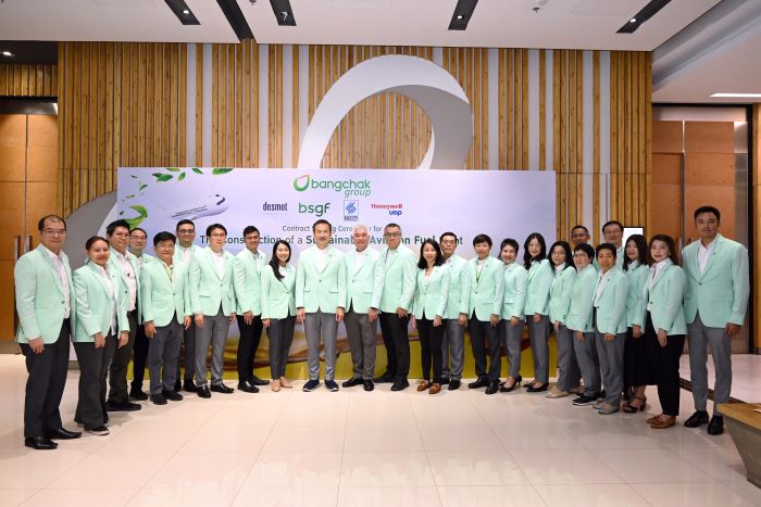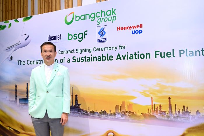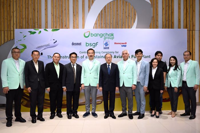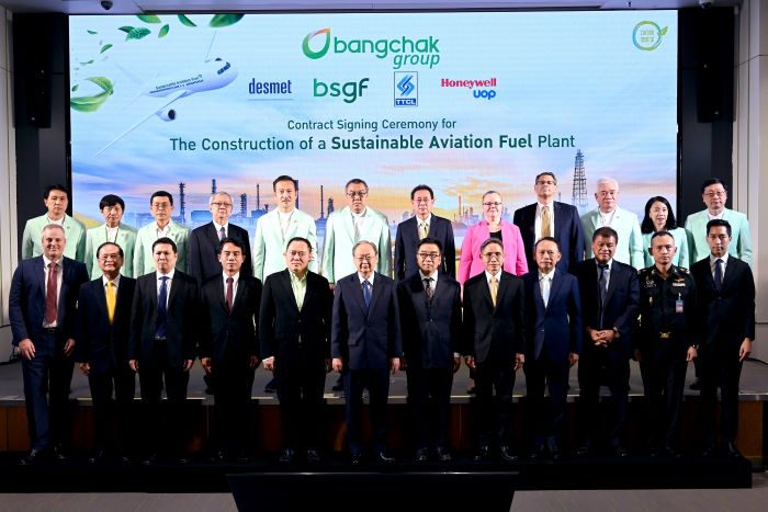 ในวันนี้ ถือเป็นก้าวสำคัญที่ได้มีพิธีลงนามสัญญาก่อสร้างหน่วยผลิตน้ำมันเชื้อเพลิงอากาศยานยั่งยืนจากน้ำมันพืชใช้แล้ว SAF รายแรกและรายเดียวในประเทศไทย ระหว่าง บริษัท บีเอสจีเอฟ จำกัด บริษัทร่วมทุนระหว่าง บริษัท บางจาก คอร์ปอเรชั่น จำกัด (มหาชน) บริษัท บีบีจีไอ จำกัด (มหาชน) และบริษัท ธนโชค ออยล์ ไลท์ จำกัด กับ บริษัท ทีทีซีแอล จำกัด (มหาชน) ผู้ดำเนินธุรกิจให้บริการด้านการออกแบบวิศวกรรมและก่อสร้างโรงงานจากประเทศญี่ปุ่น ซึ่งมีประสบการณ์ในการทำธุรกิจกับบางจากฯ มากว่า 20 ปี