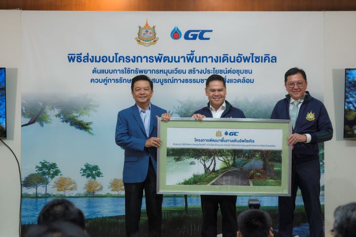 นายวราวุธ ศิลปอาชา รัฐมนตรีว่าการกระทรวงทรัพยากรธรรมชาติและสิ่งแวดล้อม เปิดเผยว่า กระทรวงทรัพยากรธรรมชาติและสิ่งแวดล้อม และ GC ได้ร่วมดำเนินการพัฒนาการก่อสร้างถนนทางเดินอัพไซเคิล และท่าน้ำอัพไซเคิลจากพลาสติกใช้แล้ว บริเวณพื้นที่รอบสระน้ำของกระทรวงทรัพยากรธรรมชาติและสิ่งแวดล้อม รวมระยะทาง 320 เมตร ซึ่งสามารถลดปริมาณขยะพลาสติกไปสู่หลุมฝังกลบมากกว่า 4,500 กิโลกรัม พร้อมช่วยลดก๊าซเรือนกระจกได้กว่า 4,700 กิโลกรัมคาร์บอนไดออกไซด์ เทียบเท่า หรือเท่ากับการปลูกต้นไม้ได้มากกว่า 495 ต้น นับเป็นโครงการพัฒนาพื้นทางเดินอัพไซเคิล ที่ได้รับฟังความคิดเห็น การออกแบบ และการเลือกใช้วัสดุร่วมกับชุมชนในพื้นที่ ซึ่งคำนึงถึงระบบนิเวศและการใช้งานอย่างสมดุล โดยยังคงรักษาความเป็นธรรมชาติที่หลากหลาย สามารถพัฒนาให้เป็นพื้นที่สาธารณะประโยชน์ในชุมชนที่เป็นมิตรต่อสิ่งแวดล้อมต่อยอดสู่การเป็นต้นแบบของการพัฒนาพื้นที่สีเขียวในเขตเมือง ที่คงไว้ซึ่งความสมดุลของธรรมชาติ และคุณภาพชีวิตที่ดีของประชาชน