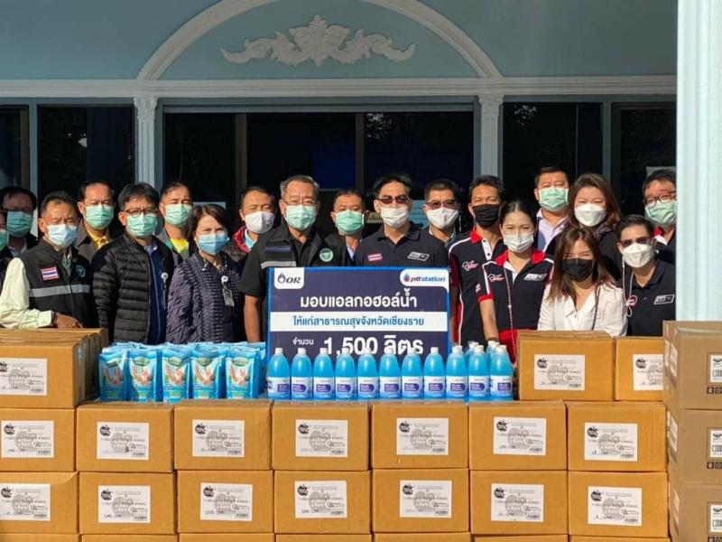 พีทีที สเตชั่น ใน 5 จังหวัดภาคเหนือ และจังหวัดราชบุรี ร่วมส่งมอบแอลกอฮอล์แบบน้ำบรรจุขวดขนาด 1,000 มิลลิลิตร และแอลกอฮอล์แบบเจลบรรจุถุงขนาด 500 มิลลิลิตร รวมกว่า 8,100 ลิตร ให้แก่หน่วยงานสาธารณสุขจังหวัดเชียงราย พะเยา ตาก พิจิตร เชียงใหม่ และราชบุรี เพื่อกระจายแก่หน่วยงานที่เกี่ยวข้องนำไปใช้ประโยชน์ในการป้องกันการแพร่ระบาดของโรคโควิด 19 โดยมีรายละเอียด ดังนี้