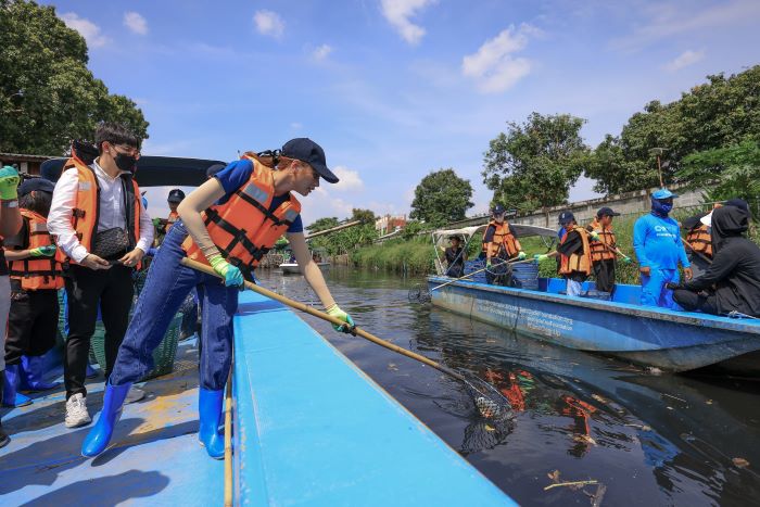 นอกจากการเรียนรู้ภาคทฤษฎีแล้ว เยาวชนทั้ง 50 คน ก็ได้ลงพื้นที่จริงเพื่อศึกษาปัญหาและแนวทางการจัดการปัญหาขยะที่หลากหลาย โดยค่ายฯ ร่วมกับมูลนิธิเทอร์ราไซเคิล ไทย (TerraCycle Thai Foundation) พาเยาวชนลงเรือออกสำรวจปัญหาขยะ เก็บขยะในพื้นที่ชุมชนคลองลาดพร้าวใจกลางกรุงเทพฯ มีการเรียนรู้การคัดแยกขยะก่อนเข้าสู่กระบวนการจัดการขยะอย่างถูกวิธี โดยกิจกรรมนี้มี แอนนา เสืองามเอี่ยม มิสยูนิเวิร์สไทยแลนด์ 2565 และ ‘ฑูตมือวิเศษ’ ผู้แทนการรณรงค์แคมเปญ ‘ไม่เทรวม’ ซึ่งเป็นโครงการด้านการจัดการขยะภายใต้ความร่วมมือของสำนักสิ่งแวดล้อมและภาคีมือวิเศษกรุงเทพ เข้ามาร่วมทำกิจกรรมกับน้อง ๆ ภายในค่ายฯ และร่วมขับเคลื่อนประเด็นด้านสิ่งแวดล้อมไปด้วยกัน