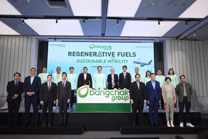 บริษัท บางจาก คอร์ปอเรชั่น จำกัด (มหาชน) จัดงานสัมมนาครั้งใหญ่แห่งปี 2566 Bangchak Group Greenovative Forum ครั้งที่ 13 ในหัวข้อ “Regenerative Fuels: Sustainable Mobility” นำเสนอประเด็นเชื้อเพลิงอนาคตที่จะตอบโจทย์การเดินทางอย่างยั่งยืน โดยผู้เชี่ยวชาญทั้งในระดับโลกและระดับประเทศร่วมสะท้อนมุมมองภาคส่วนต่าง ๆ ซึ่งมีผู้เข้าร่วมที่อาคารเอ็มทาวเวอร์ เกือบ 300 คน และผ่านช่องทางออนไลน์ประมาณ 2,700 คน และได้รับเกียรติจากมิสซิส แอสทริด เอมิเลีย เฮลเลอ เอกอัครราชทูตแห่งราชอาณาจักรนอร์เวย์ ประจำประเทศไทย นายปิ่นสักก์ สุรัสวดี อธิบดีกรมทรัพยากรทางทะเลและชายฝั่ง และนายสไกร คงธรรม ผู้ช่วยผู้อำนวยการฝ่ายพัฒนาธุรกิจเกี่ยวเนื่อง การไฟฟ้าฝ่ายผลิตแห่งประเทศไทย ร่วมรับฟัง