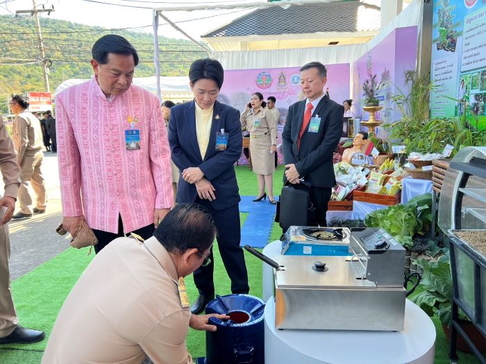 นอกจากนั้น ยังได้นำเสนอผลิตภัณฑ์ชุมชนที่นำเทคโนโลยีด้านพลังงาน มาใช้ในกระบวนการผลิต ทำให้ผลิตภัณฑ์ชุมชนที่ได้นั้นสามารถลดระยะเวลาในการผลิต ลดต้นทุนการผลิต เพิ่มรายได้ให้เกษตรกรและกลุ่มวิสาหกิจชุมชนมากขึ้น และผลิตภัณฑ์ที่ได้มีความสะอาด ผ่านมาตรฐานจนได้รับรางวัลผลิตภัณฑ์ชุมชนดีเด่น โดยผลิตภัณฑ์ที่นำมาเสนอในการประชุม ครม. สัญจรในครั้งนี้ประกอบด้วย เมล็ดกาแฟคั่ว กาแฟกระชายดำ และชาใบพืชปาล์มจากจังหวัดเลย กล้วยติดหนึบจากจังหวัดพิจิตร ข้าวฮางงอกจากจังหวัดหนองคาย