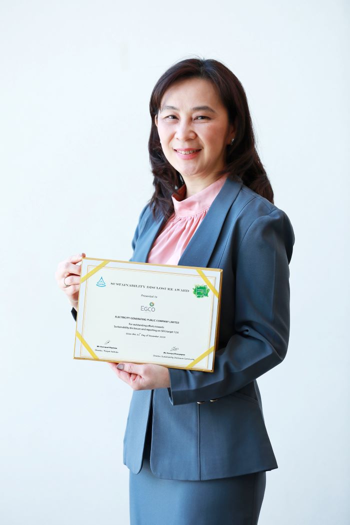 บริษัท ผลิตไฟฟ้า จำกัด (มหาชน) หรือ เอ็กโก กรุ๊ป คว้ารางวัลเกียรติคุณ (Award) จากงานมอบรางวัลการเปิดเผยข้อมูลความยั่งยืน ประจำปี 2023 (Sustainability Disclosure 2023) ต่อเนื่องเป็นปีที่ 5 จากสถาบันไทยพัฒน์ ตอกย้ำความโปร่งใสในการเปิดเผยข้อมูลครบทุกมิติ ทั้งเศรษฐกิจ สิ่งแวดล้อม สังคม และการกำกับดูแลกิจการที่ดี และสอดคล้องกับเป้าหมายการพัฒนาที่ยั่งยืน (SDGs) ขององค์การสหประชาชาติ โดยนางสาวกุลกนก เหลืองสร้อยทอง ผู้จัดการฝ่ายเลขานุการบริษัท เอ็กโก กรุ๊ป เป็นผู้แทนบริษัท เข้ารับรางวัล จากนางสาววีรญา ปรียาพันธ์ ผู้อำนวยการประชาคมการเปิดเผยข้อมูลความยั่งยืน (SDC) สถาบันไทยพัฒน์ ในพิธีมอบรางวัลฯ ที่จัดขึ้น ณ หอศิลปวัฒนธรรมแห่งกรุงเทพมหานคร เมื่อเร็ว ๆ นี้